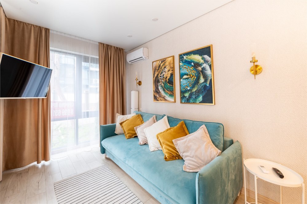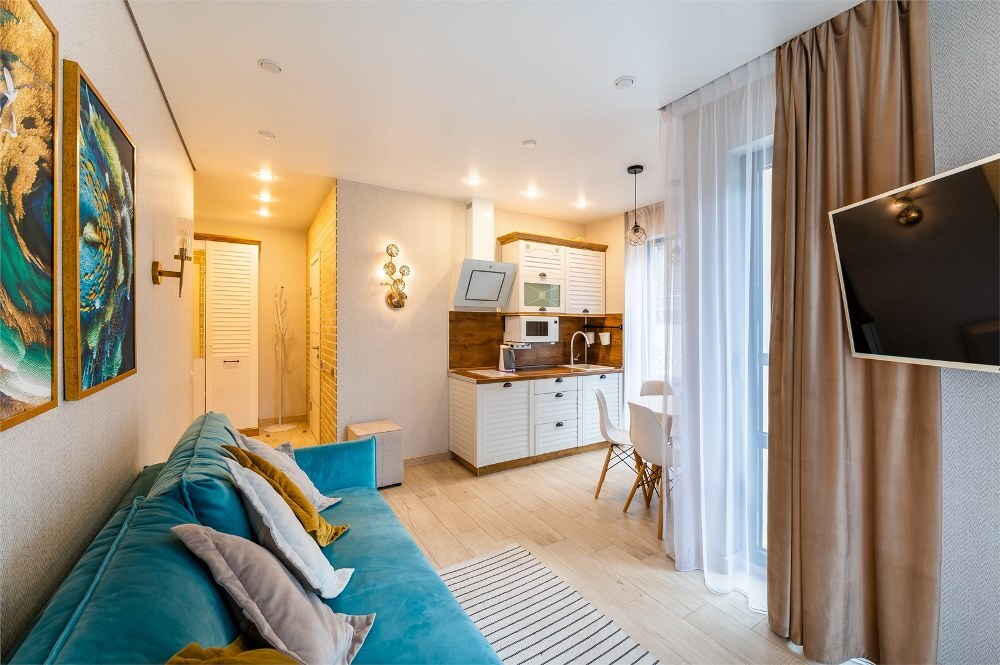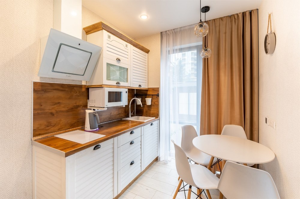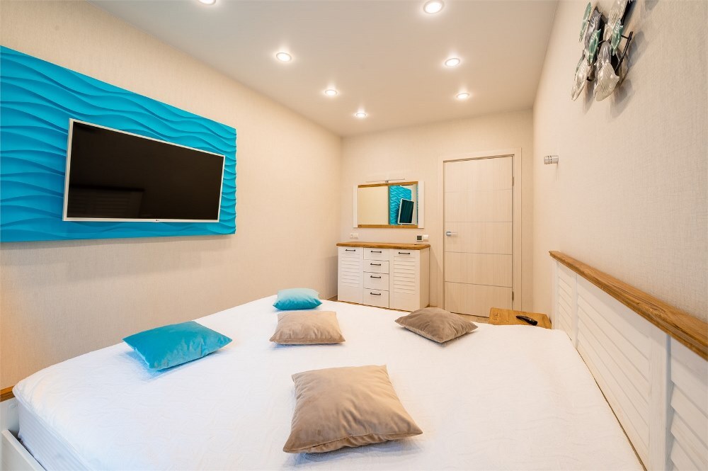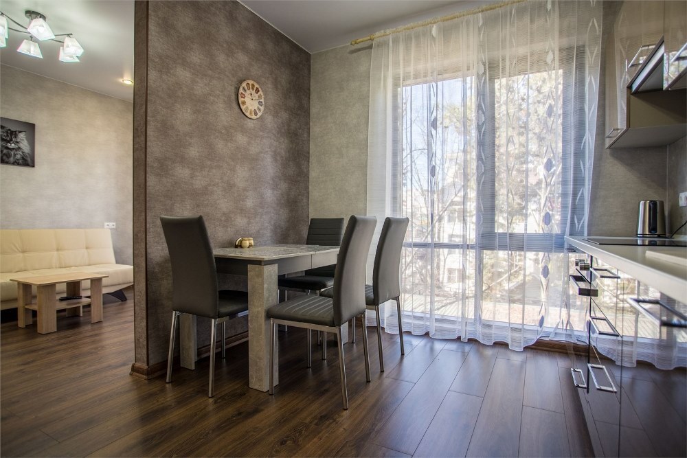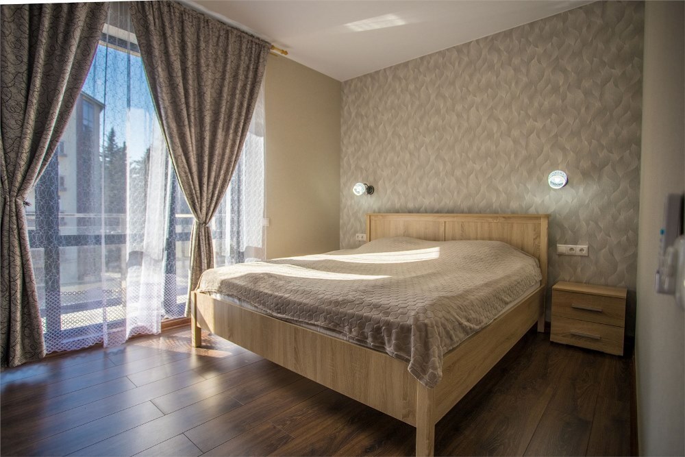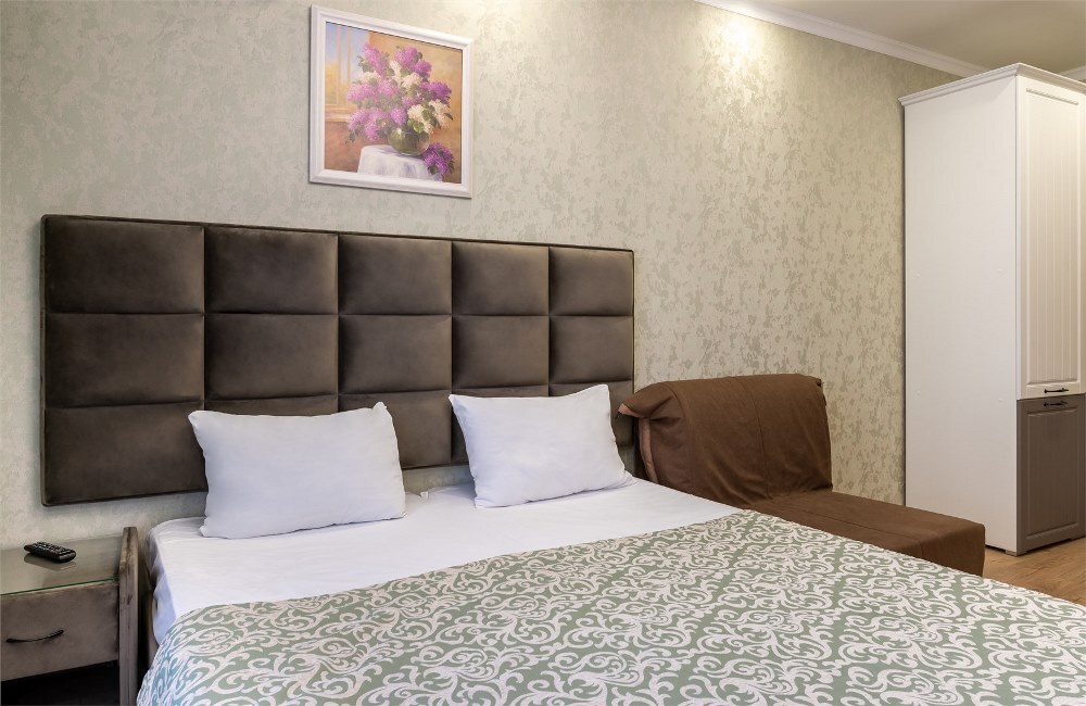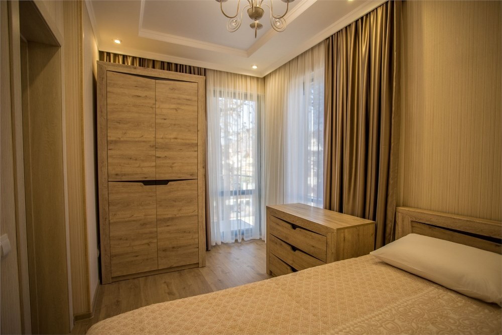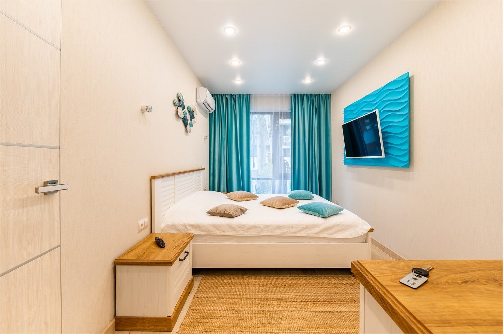 Современный трехэтажный корпус отеля занимает закрытую благоустроенную территорию на первой береговой линии. Гостям предлагаются комфортабельные апартаменты со стильными дизайнерскими интерьерами. Все номера оснащены кухней, имеется необходимая бытовая техника, включая кондиционер и стиральную машину.