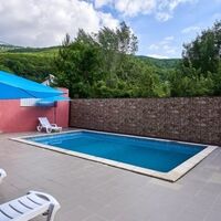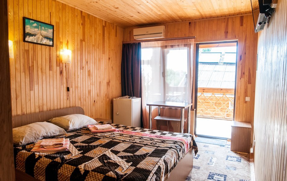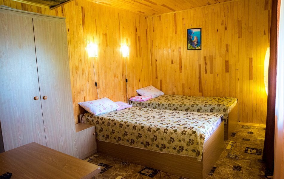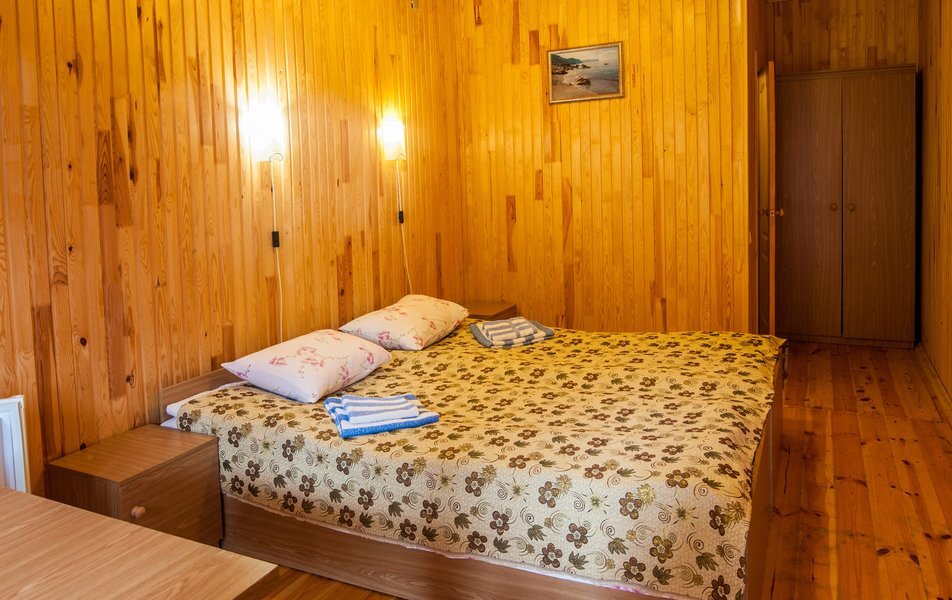 Трехэтажное здание отеля разместилось на небольшой благоустроенной территории в 2000 кв.м. и рассчитано на проживание более тридцати отдыхающих. Двухместные номера категории комфорт и трехкомнатный четырехместный номер на последнем этаже оснащены кондиционерами, телевизорами, холодильниками, собственными ванными комнатами с душем.