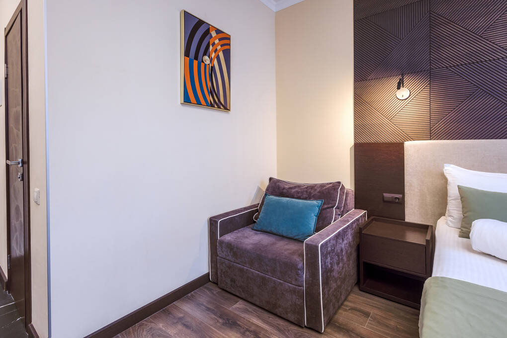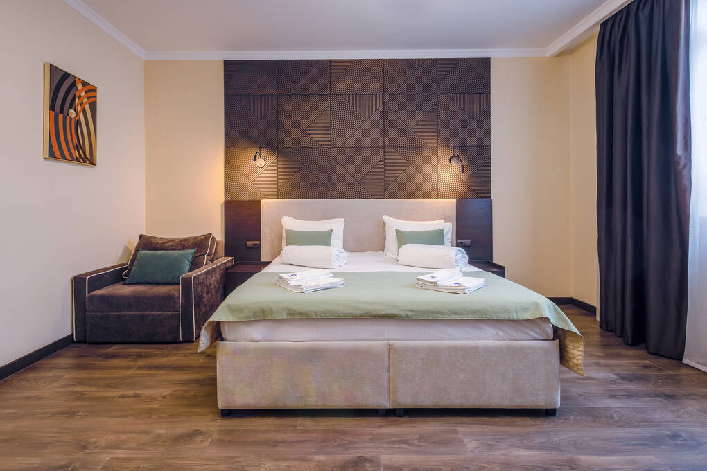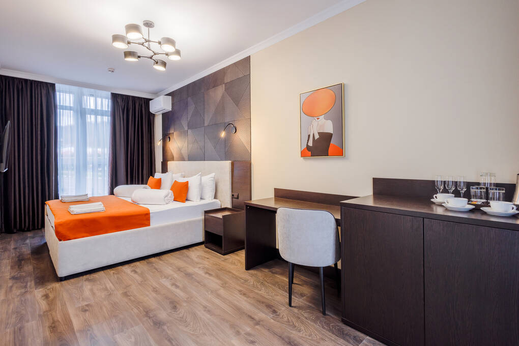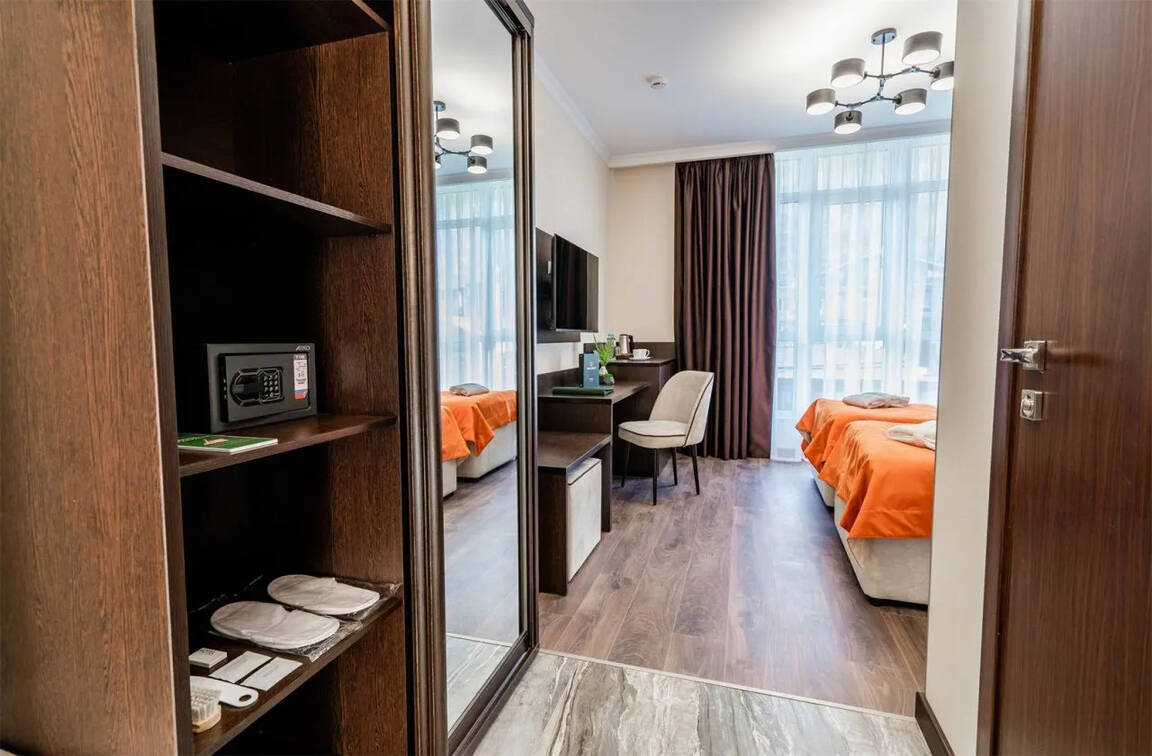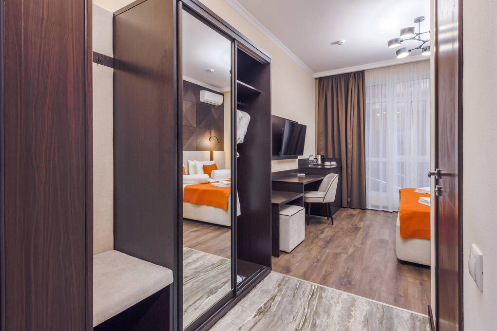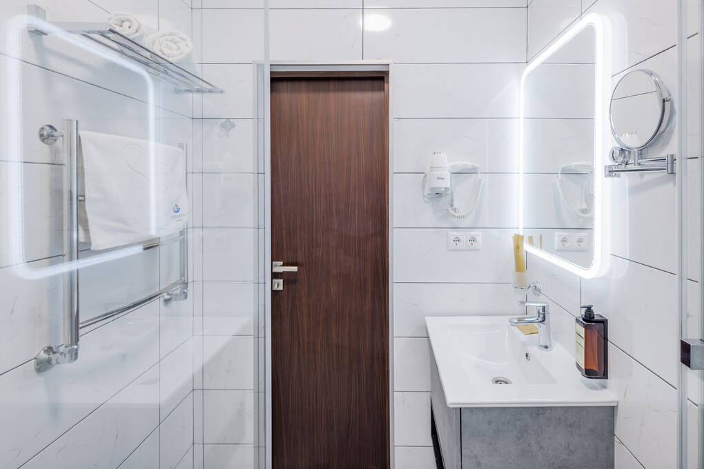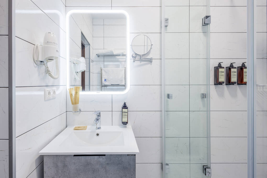 Номера оборудованы всем необходимым: от удобных кроватей, сплит-системы, мини-холодильника и современного телевидения до сейфа и электрического чайника. В гостевом доме предусмотрены полностью оборудованные санузлы с душевыми кабинами и фенами, а также удобства для отдыха: мягкие полотенца, халаты и тапочки.