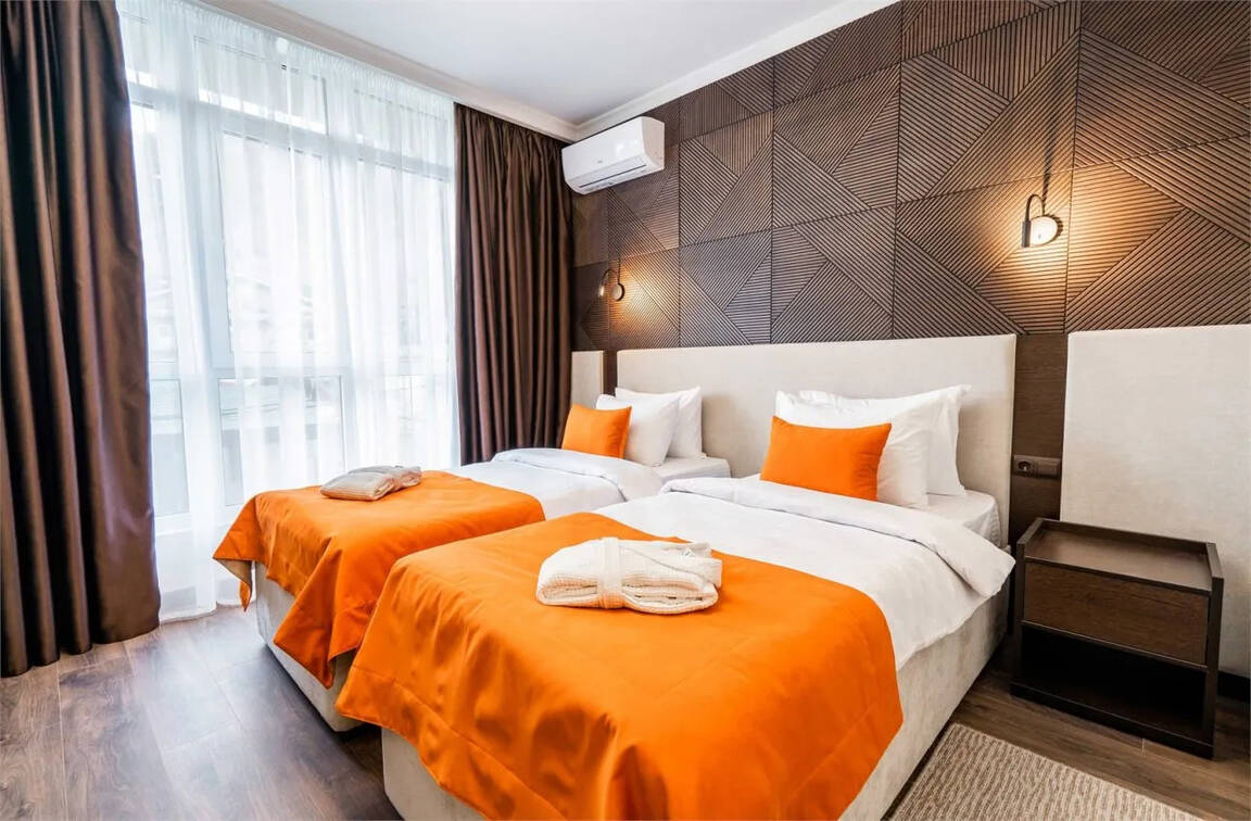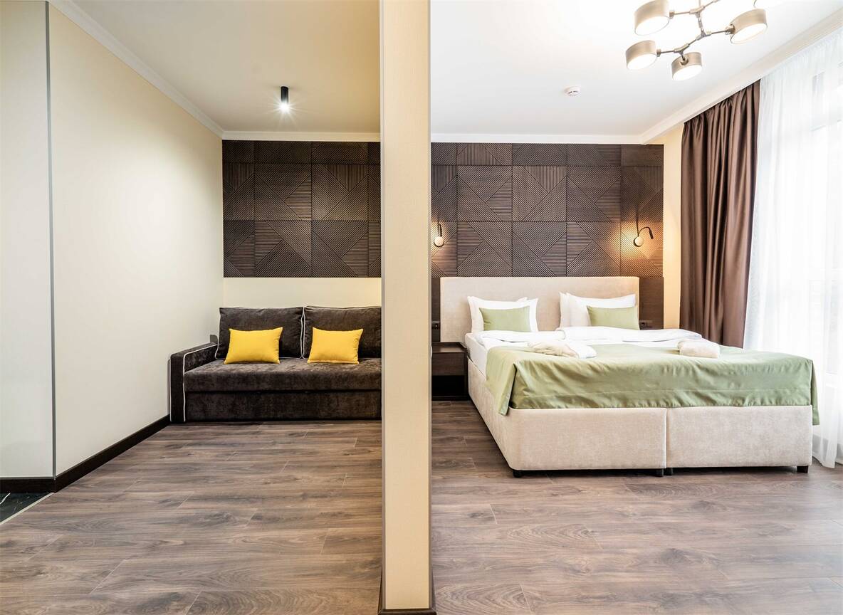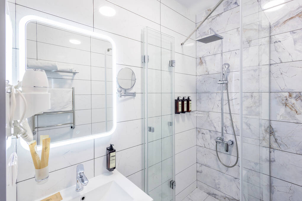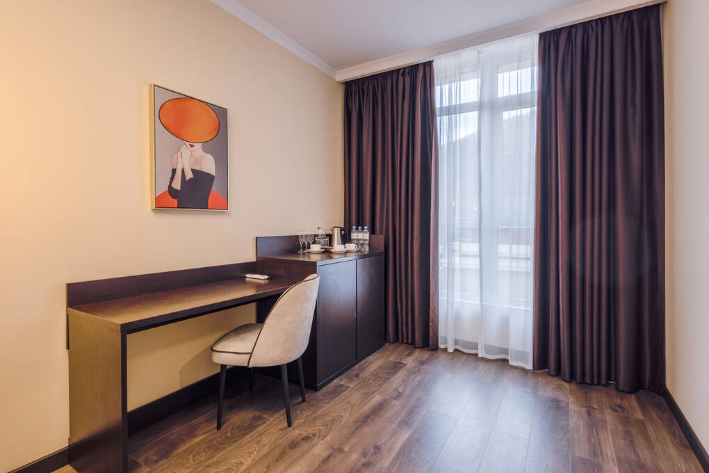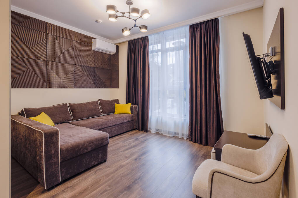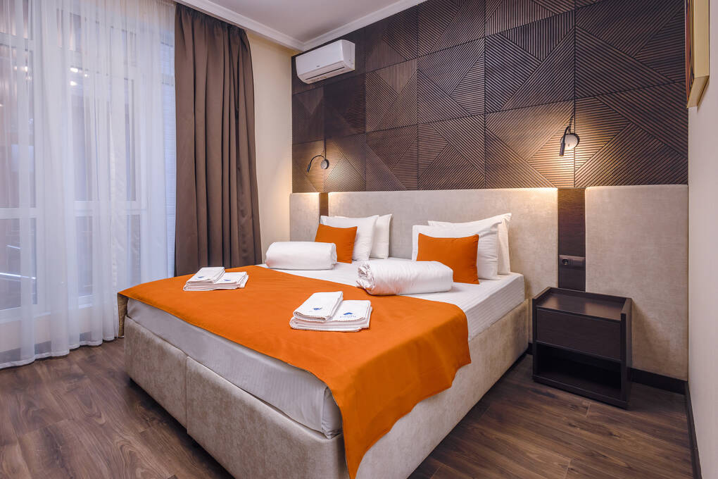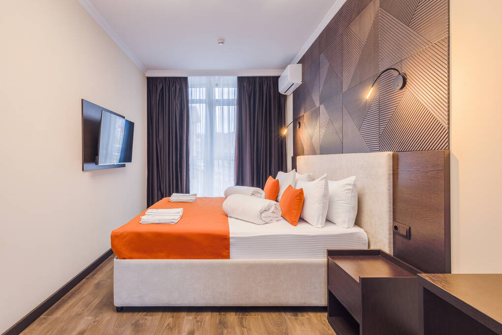 Номера оборудованы всем необходимым: от удобных кроватей, сплит-системы, мини-холодильника и современного телевидения до сейфа и электрического чайника. В гостевом доме предусмотрены полностью оборудованные санузлы с душевыми кабинами и фенами, а также удобства для отдыха: мягкие полотенца, халаты и тапочки.