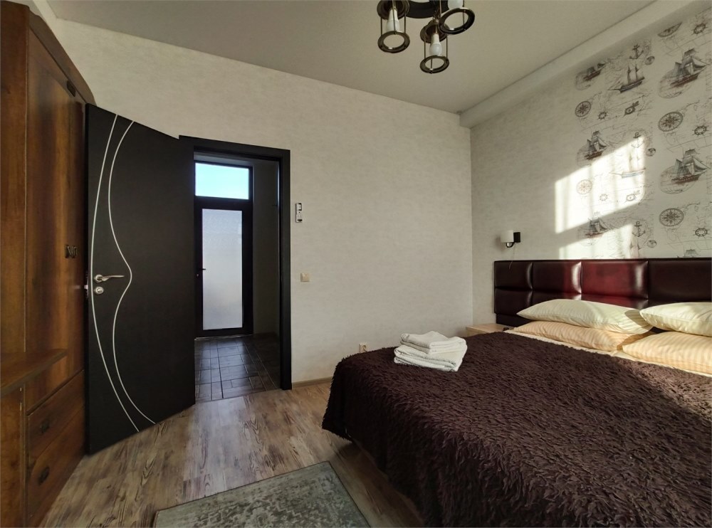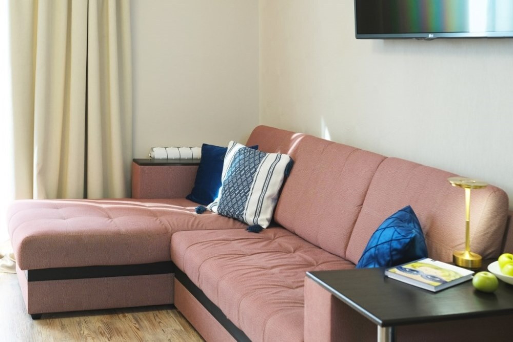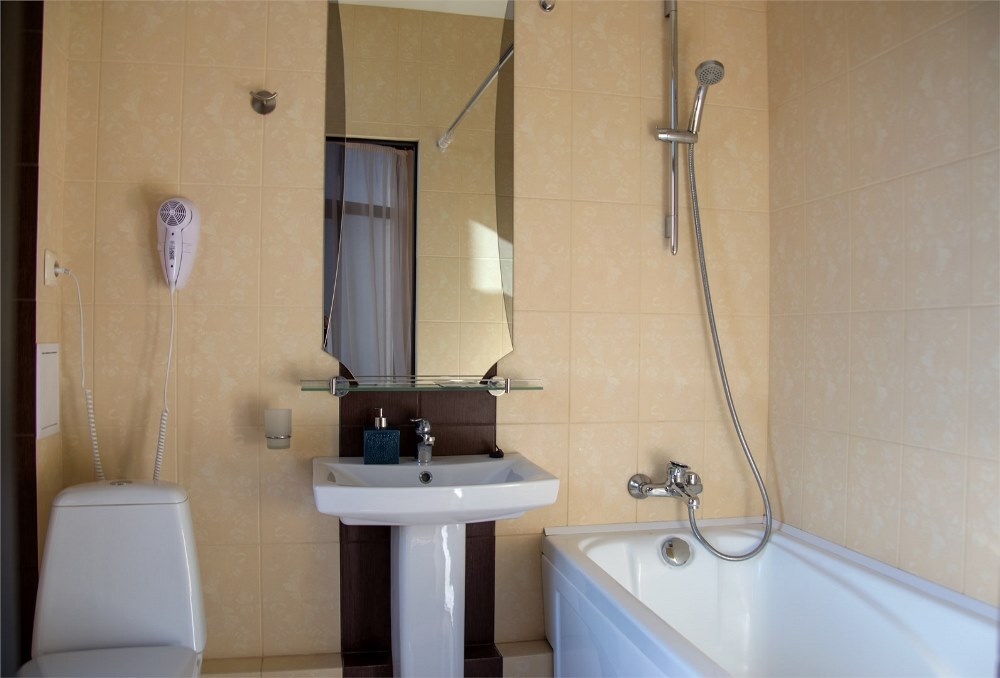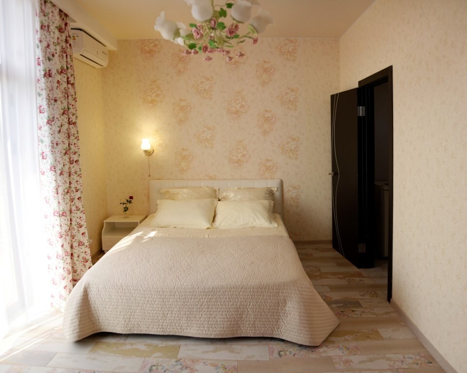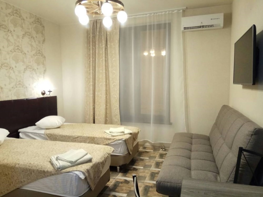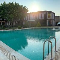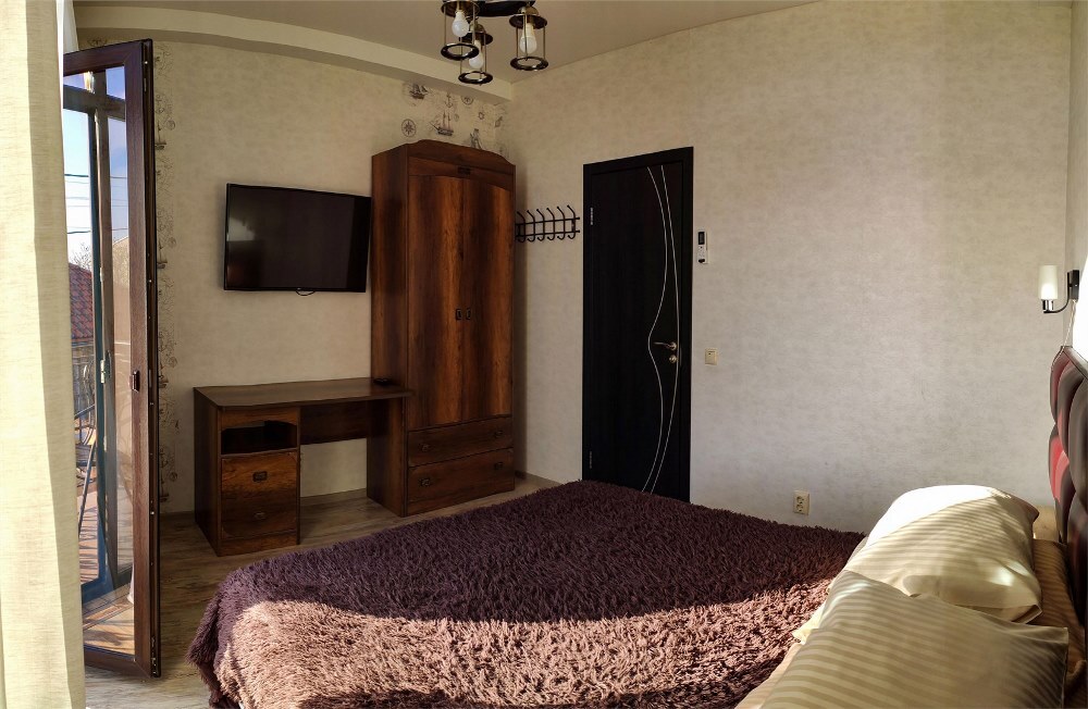 Двухэтажный корпус занимает благоустроенную территорию рядом с морем и парком из хвойных деревьев. В распоряжении гостей однокомнатные и двухкомнатные номера со светлыми интерьерами. В номерах — панорамные окна, есть санузел с душем, кондиционер, мини-холодильник и электрочайник. В некоторых номерах предусмотрены балконы, в других же имеются открытые террасы для отдыха.