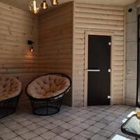 При гостевом доме работает кафе. К услугам гостей — уличный бассейн с шезлонгами, жаркая баня с камином, батут во дворе и беспроводной интернет.
