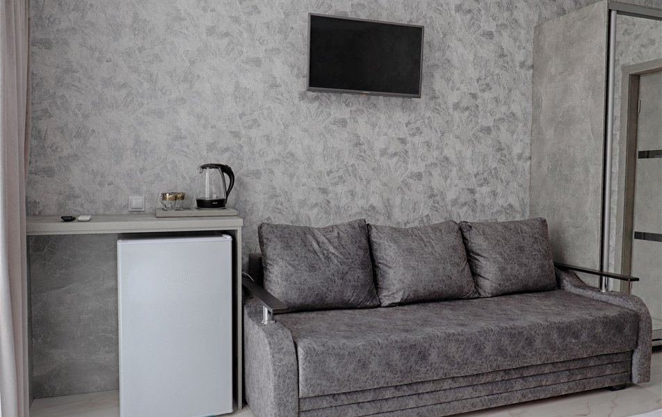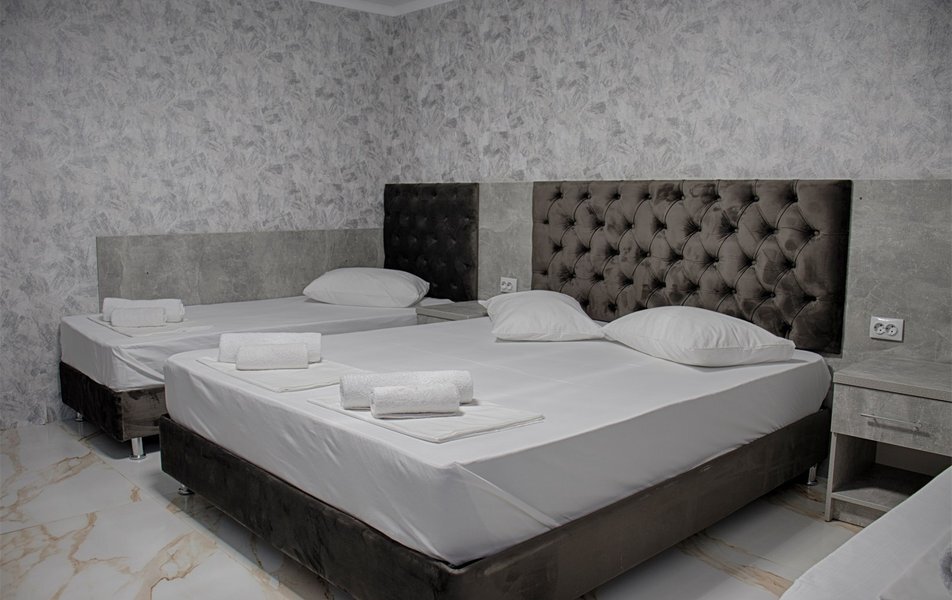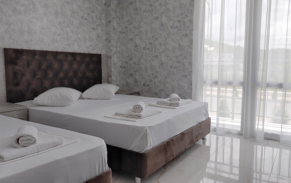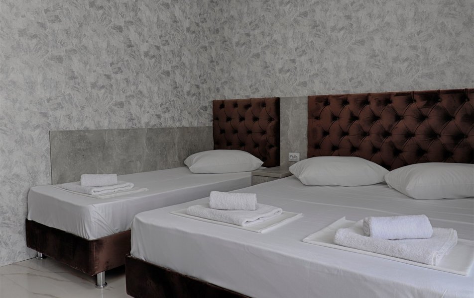 Трехэтажное здание гостевого дома с дополнительными цокольным и мансардным этажами разместилось возле реки Псезуапсе в 5 минутах пешей прогулки от морского пляжа побережья. В распоряжении гостей просторные номера со светлым лаконичным интерьером с балконами и без. Во всех комнатах предусмотрены санузел с душем и набором косметических принадлежностей для гостей, телевизор-ЖК, мини-холодильник, сплит-система, фен, электрочайник.