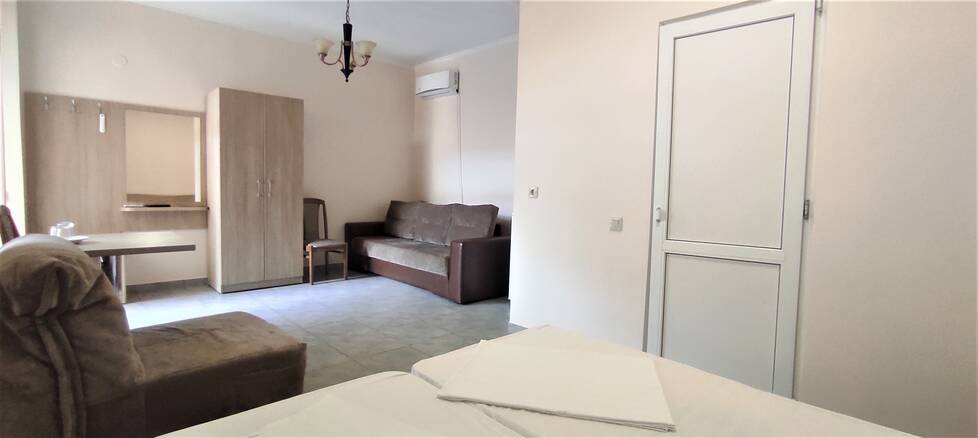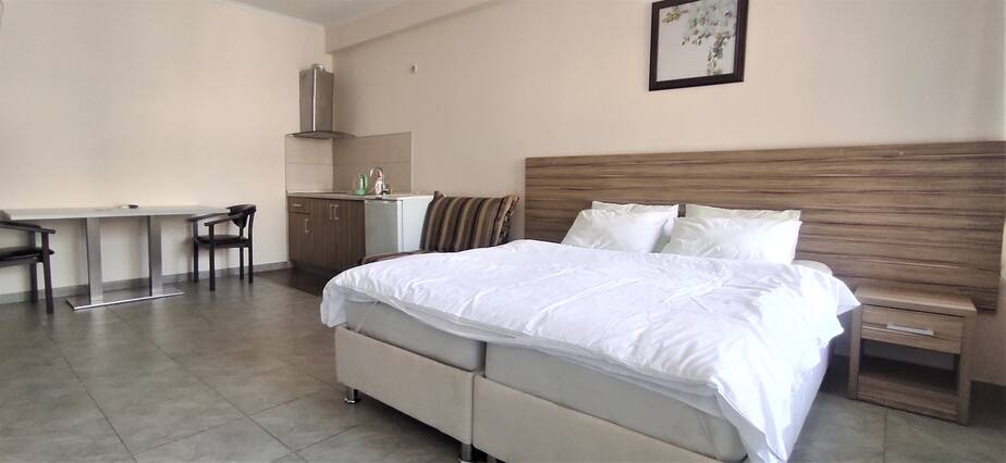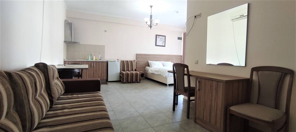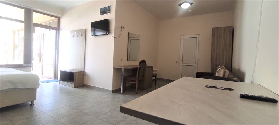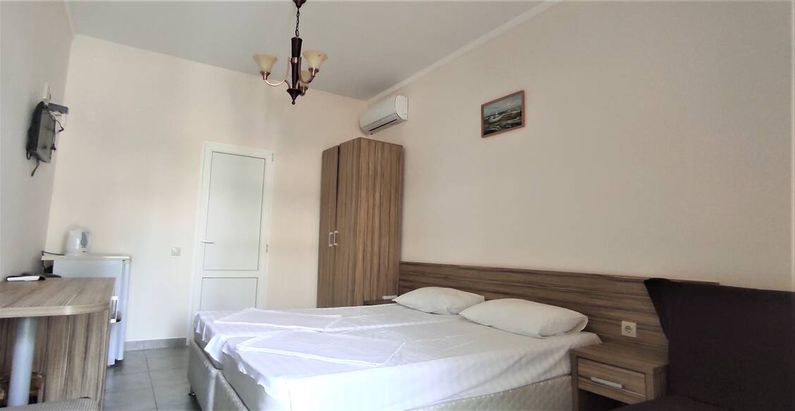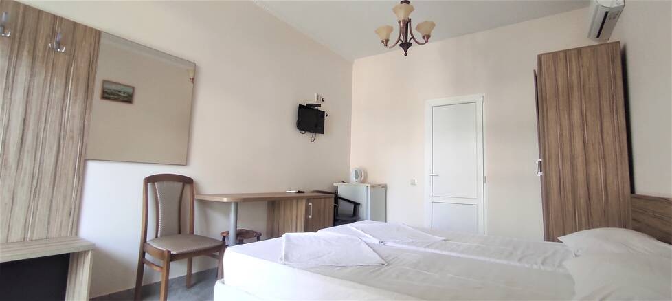 Номерной фонд различный. Комнаты оборудованы всем, что может понадобиться на отдыхе. В номерах есть удобная мебель, шкаф для хранения одежды, телевизор, кондиционер, холодильник и ванная комната. Выход из каждого номера осуществляется на балконы гостиницы, с которых можно любоваться на красивый сад и пруд.