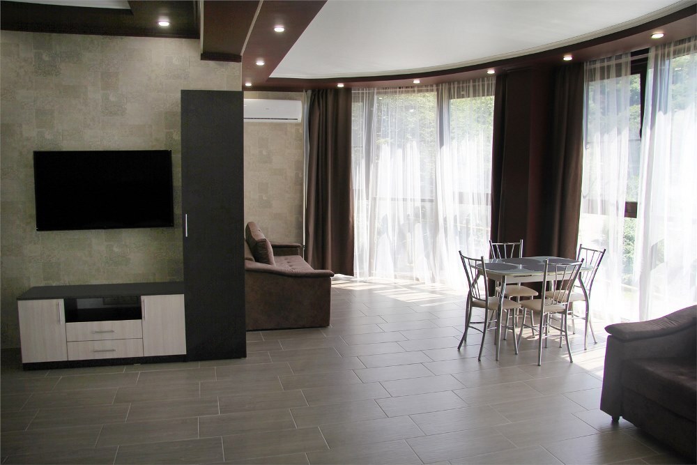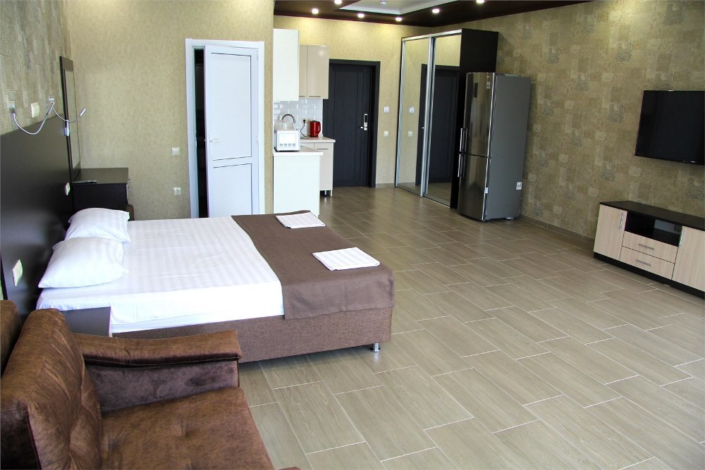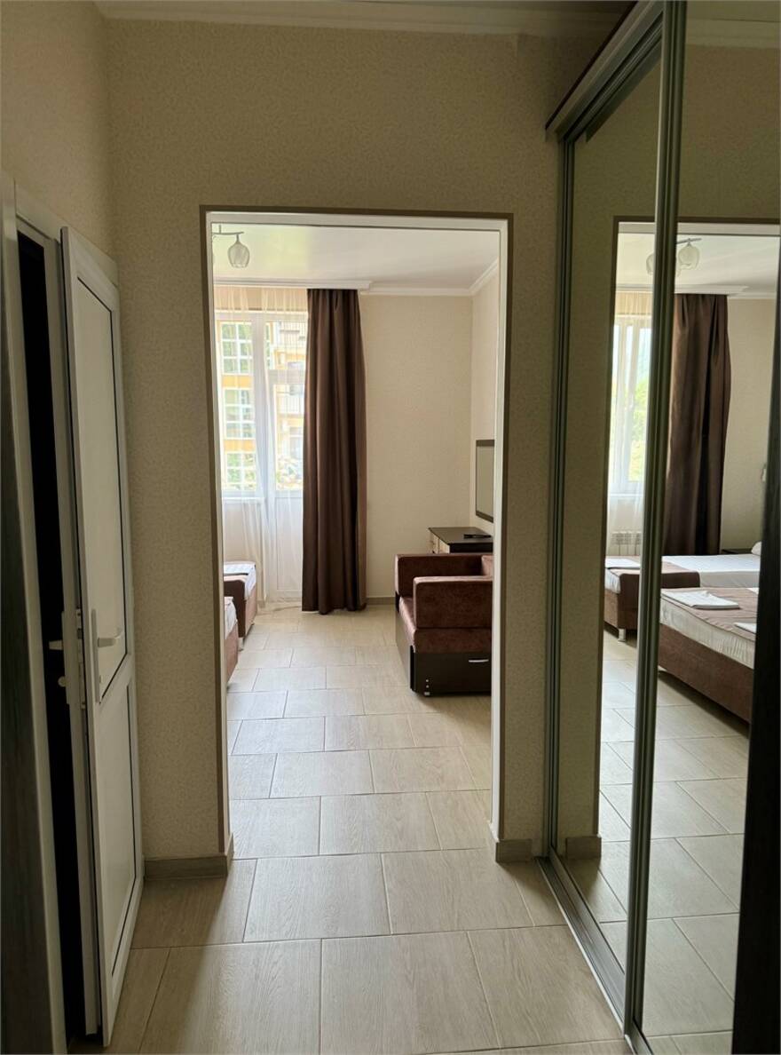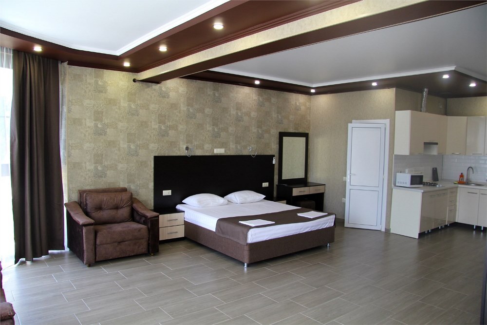Отель «Вариант» построен в 2010 году практически на берегу Чёрного моря в центре курортного городка. Возле него находятся дельфинарий и океанарий, аквапарк «Амфибиус» и другие впечатляющие места. Из панорамных окон отеля открывается морской простор, экзотические парки, живописные окрестности. Территория отеля со вкусом и фантазией засажена редкими тропическими растениями и цветами. Главное белоснежное 5-этажное здание отеля с лоджиями и балконами и второй корпус в 4 этажа вмещают номера с разнообразным дизайном. «Вариант» особенно хорош для семейного отдыха и не разочарует любителей проводить время в дружной компании. Романтические пары и одиночные отдыхающие тоже найдут в нём особую прелесть. Проживание в отеле гарантирует всем постояльцам комплекса охраняемую парковку и пользование wi-fi, сейфом и бассейном, а также библиотекой. Гостям обеспечен бесплатный трансфер из аэропорта. Кроме этого, к услугам приезжих – прачечная, несколько магазинов, продажа билетов в театр и заказ экскурсий, русская баня с парилкой и ледяной купелью, караоке и концертные программы. Питание не входит в пакет услуг клиентам вместе с заселением, но гости отеля имеют заказать 2-х или 3-разовое комплексное питание. Кроме столовой, в «Варианте» функционируют паб, закрытое и летнее кафе с богатым ассортиментом блюд и умеренными ценами. Для самых юных гостей в отеле устроена игровая площадка, настольные игры, дартс. При заселении родители могут воспользоваться скидками и льготами – в зависимости от возраста детей. Летом ребят и взрослых особенно порадует море и галечный пляж в 50 м от отеля. Здесь всегда найдутся навесы, зонты, лежаки, хорошо оснащённый прокат, кафе и бар, водные аттракционы и прогулки, дайвинг.
