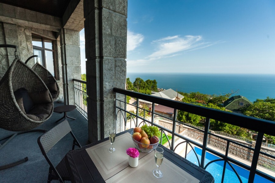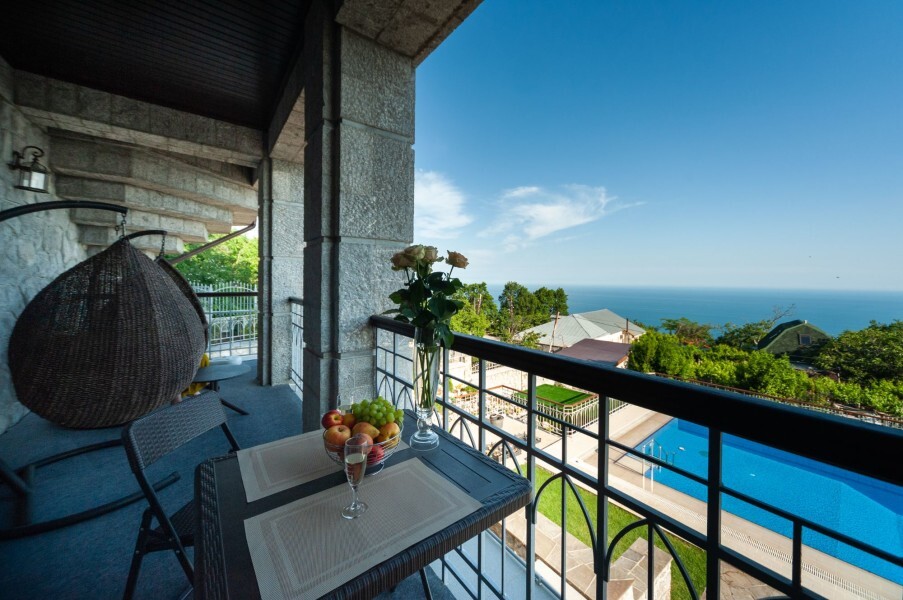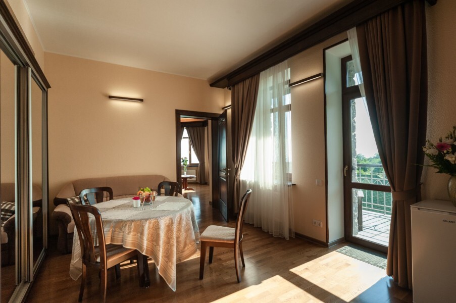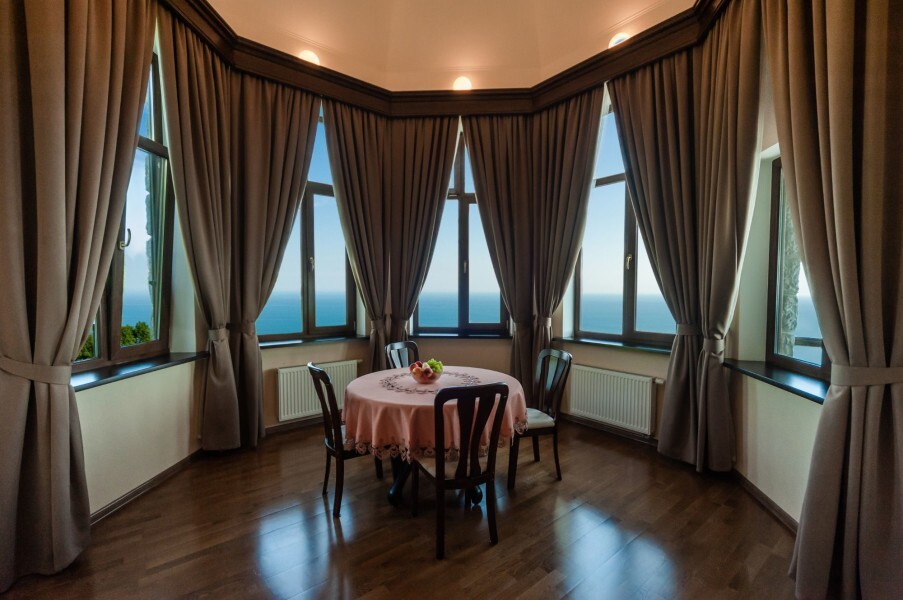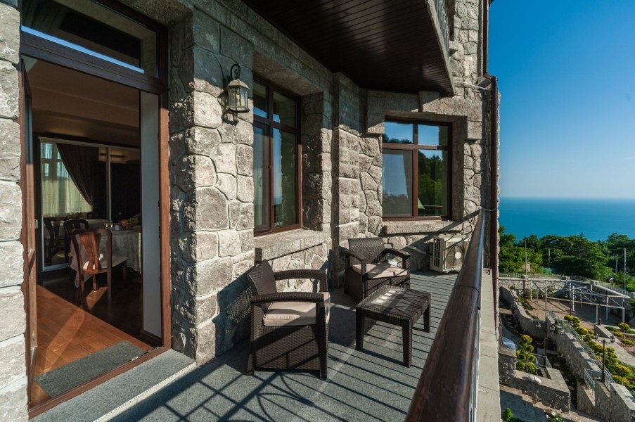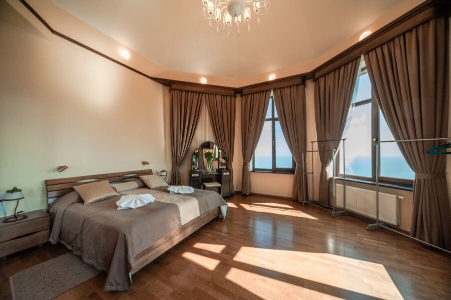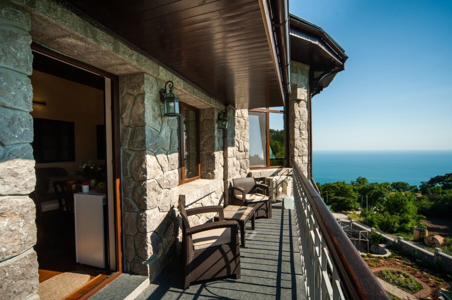 Четырехэтажное здание гостевого дома со смотровой башней ориентировано по четырем сторонам света. На втором, третьем и четвертом этажах располагаются комфортабельные номера, названные в честь природных достопримечательностей Крыма. В каждом номере предусмотрен индивидуальный санузел, есть кондиционер, плазменный телевизор, набор посуды, подключен интернет.