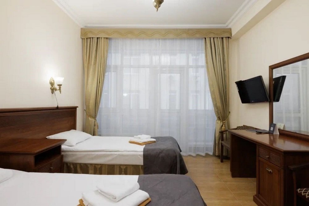 Уютная обстановка номера и внимательное отношение персонала создадут приятную атмосферу отдыха.Для всех проживающих в отеле бассейн с подогревом! На территории комплекса имеется автостоянка.Так же для гостей открыт ресторан. Блюда европейской и кавказской кухни, фирменные блюда от шеф-повара приятно удивят разнообразием и отменным вкусом.Проведение банкетов, свадеб, вечеринок.