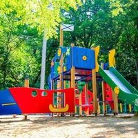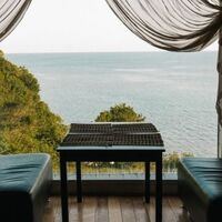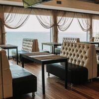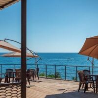 В паре минут ходьбы находится поселковый галечный пляж. На пляже есть навесы, кабинки для переодевания, можно взять в аренду шезлонги.