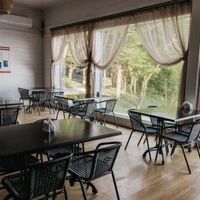 В гостевом комплексе работает кафе, отдыхающие могут провести время у бассейна, на террасе или на спортивной площадке. На территории есть охраняемая парковка, ловит сеть wi-fi, организована детская площадка, а для малышей в зале питания предусмотрены стульчики для кормления.