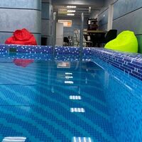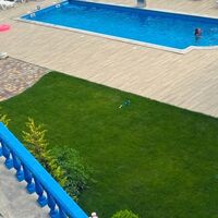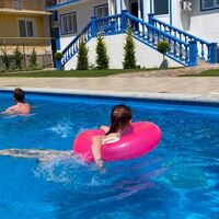 На территории есть открытый бассейн с зоной отдыха и шезлонгами по периметру. Бассейн порадует водой - она морская, проходит фильтрацию и очистку на современном автоматическом оборудовании. Плавать в бассейне совершенно безопасно. Длина достигает 12,86 метров, а ширина чуть более 4 метров. Чаша имеет постоянную глубину в 1,5 м, что удобно и безопасно для купающихся.