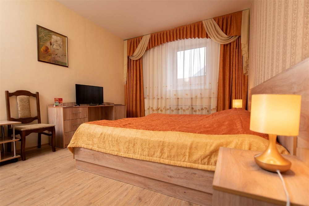 Номерной фонд расположился 4-этажном здании. Интерьер комнат оформлен в светлых, теплых оттенках. К услугам гостей комфортная мебель для отдыха и хранения одежды, телевизор с плоским экраном и кабельными каналами, мини холодильник, телефон, высокоскоростной интернет. Санузел индивидуальный, с душем и туалетными принадлежностями. На территории гостиницы функционирует ресторан, в котором представлены блюда русской и европейская кухни, а также доступно проведение различных мероприятий.