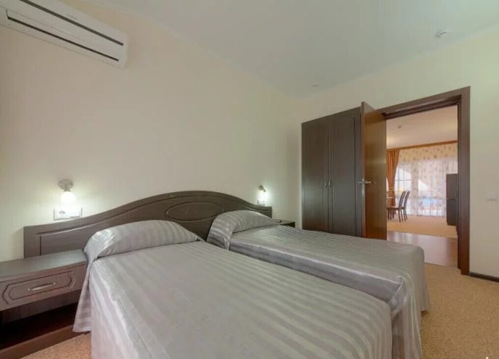 см. на картеЭтот отель создает идеальные условия для отдыха в любое время года, предлагая гостям разнообразные варианты размещения. Здесь можно остановиться в уютном стандартном номере главного корпуса, выбрать улучшенную категорию с более просторной планировкой или поселиться в отдельном коттедже с двумя комнатами для полного уединения. Для семейных гостей предусмотрены просторные семейные номера на четверых человек и улучшенные люксы с отдельными зонами для детей.