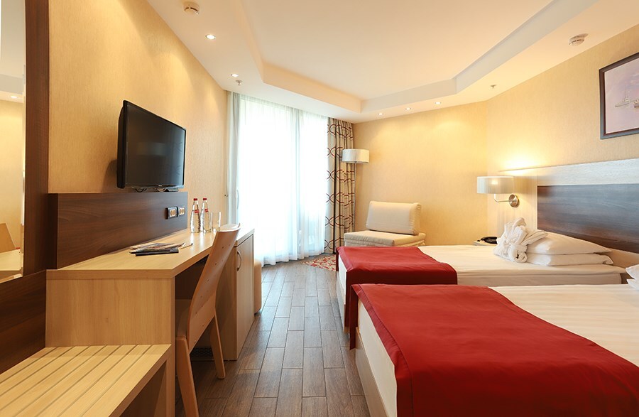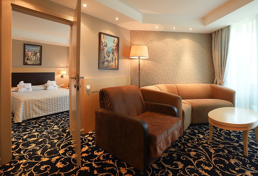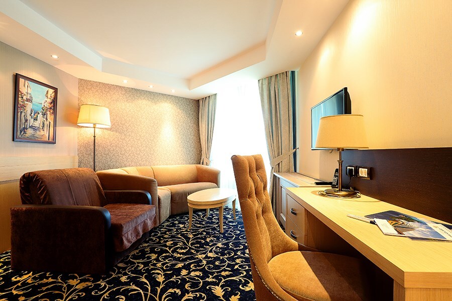 Гостей размещают в двух корпусах: основном 27-этажном здании категории 4 звезды и элитном пятизвёздочном корпусе «Меркурий». Номера отличаются изысканным дизайном и оснащены всей необходимой высококачественной техникой, включая доступ в интернет.
