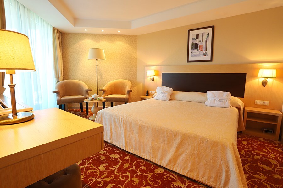 Гостям доступны крытые и открытые бассейны, великолепный банный комплекс, современный фитнес-центр, тренажёрные залы, а также разнообразные спортивные площадки для игры в теннис, волейбол или баскетбол. Для удобства предусмотрены две бесплатные парковки, панорамный лифт, спускающийся к морю, и бесплатный трансфер на пляж. Для ценителей развлечений работают ночной клуб, концертный зал, кинозал, бильярд и боулинг. Организуются экскурсии и конные прогулки. Особое внимание уделяется самым юным гостям: для них созданы игровые комнаты, бассейны, анимационные программы и предлагаются услуги профессиональных воспитателей.