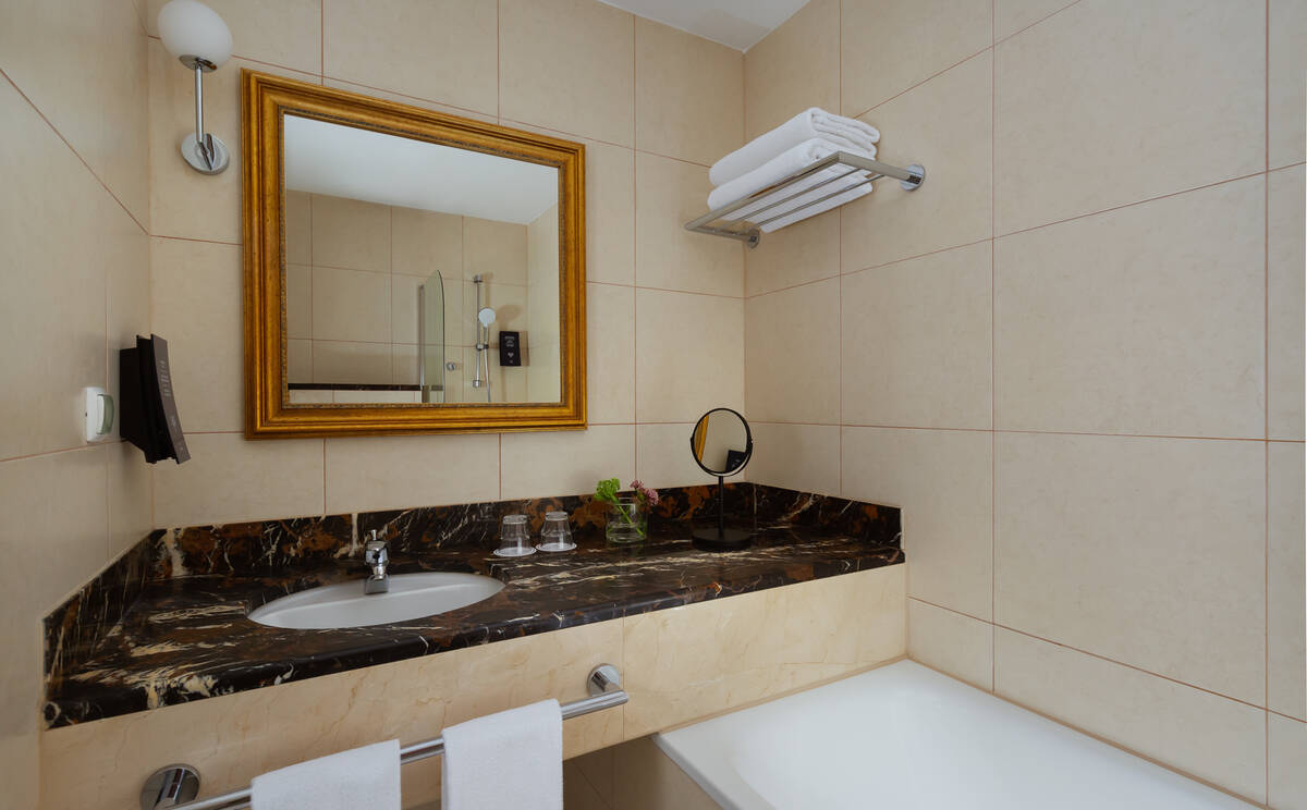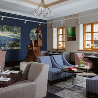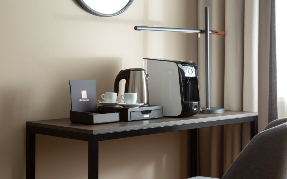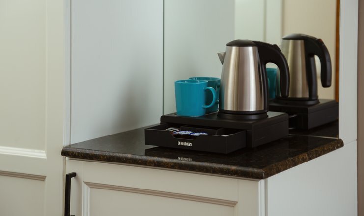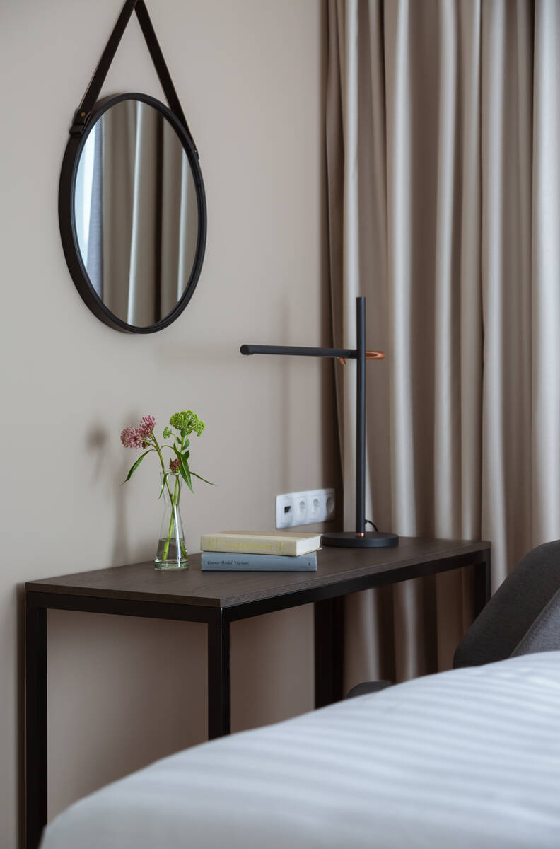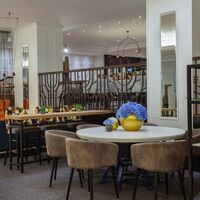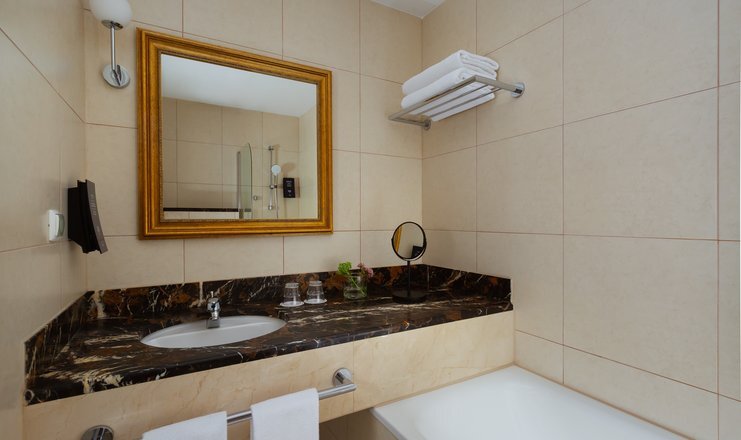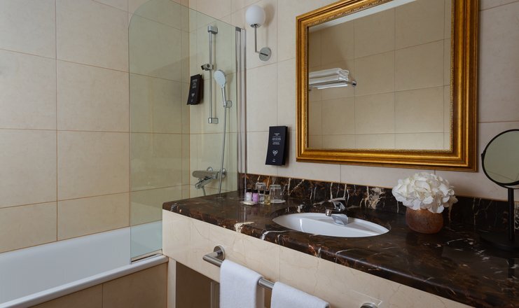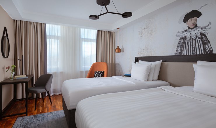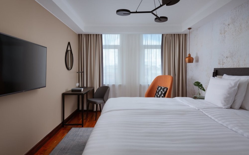 Номерной фонд расположился в 7-этажном здании. Дизайнерские комнаты оснащены современной мебелью, телевизором, кондиционером, мини-холодильником, сейфом, гладильными принадлежностями. Санузел с ванной или душем, есть фен и косметические принадлежности. На 1 этаже отеля работает ресторан «Репин», а также паб «8 линия». При необходимости отдыхающим предоставляется транспорт. Личный транспорт можно оставлять на парковке.