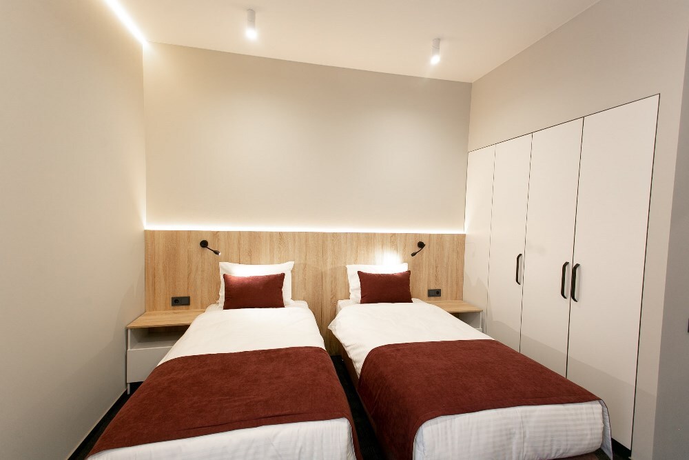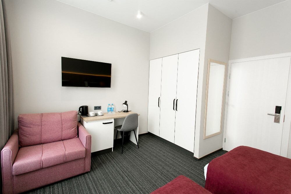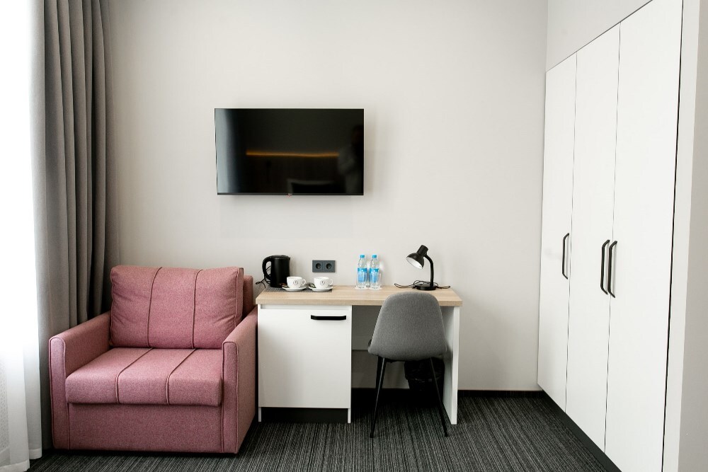 Ограниченное количество номеров позволит гостям насладиться отдыхом в теплой и уютной атмосфере. В каждом номере есть кондиционер, телевизор, холодильник и собственная ванная комната. Также имеется рабочая зона, предоставляются бутилированная вода, фен и Wi-Fi на всей территории. На 1 этаже расположен гастробар «BOTTEGA», где подают блюда европейской, итальянской, азиатской и ближневосточной кухни. Также можно заказать полноценный завтрак.