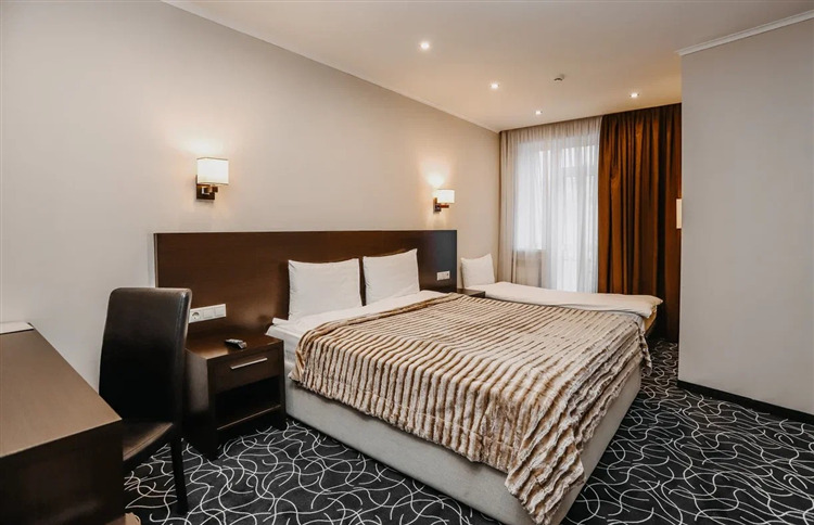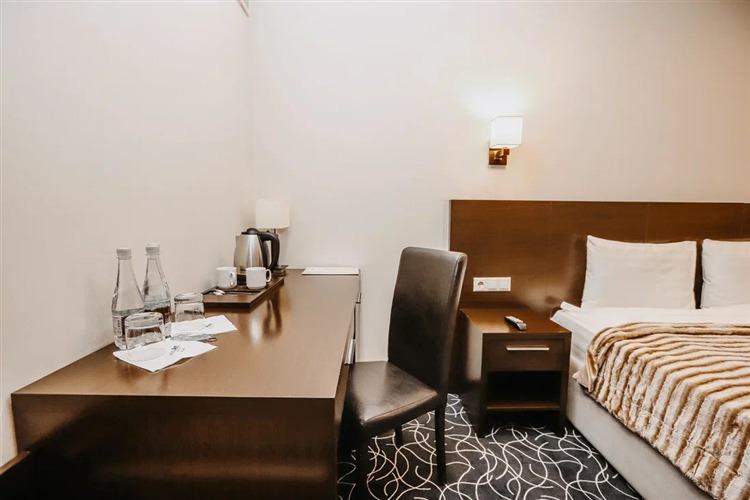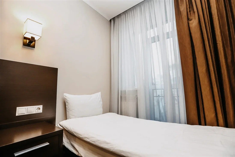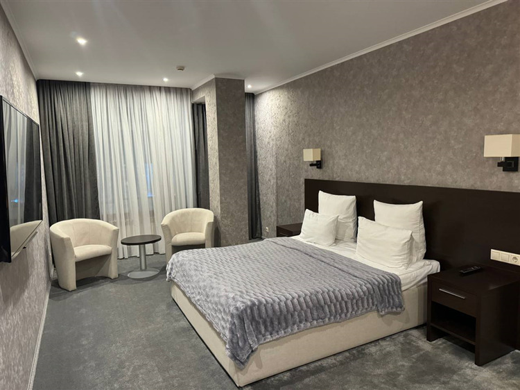 6-ти этажное здание отеля состоит из 58 номеров только высшей категории комфорта. Стильные, функциональные номера, отвечающие европейским стандартам, укомплектованы качественной мебелью и необходимой бытовой техникой – кондиционерами, телевизорами, холодильникам, фенами.