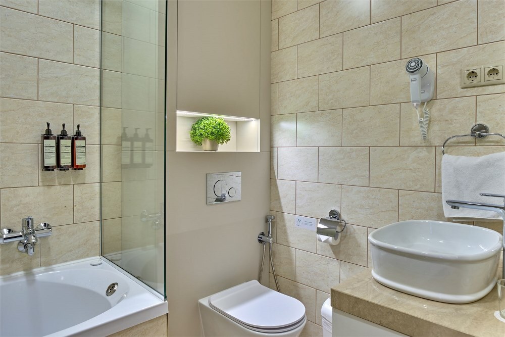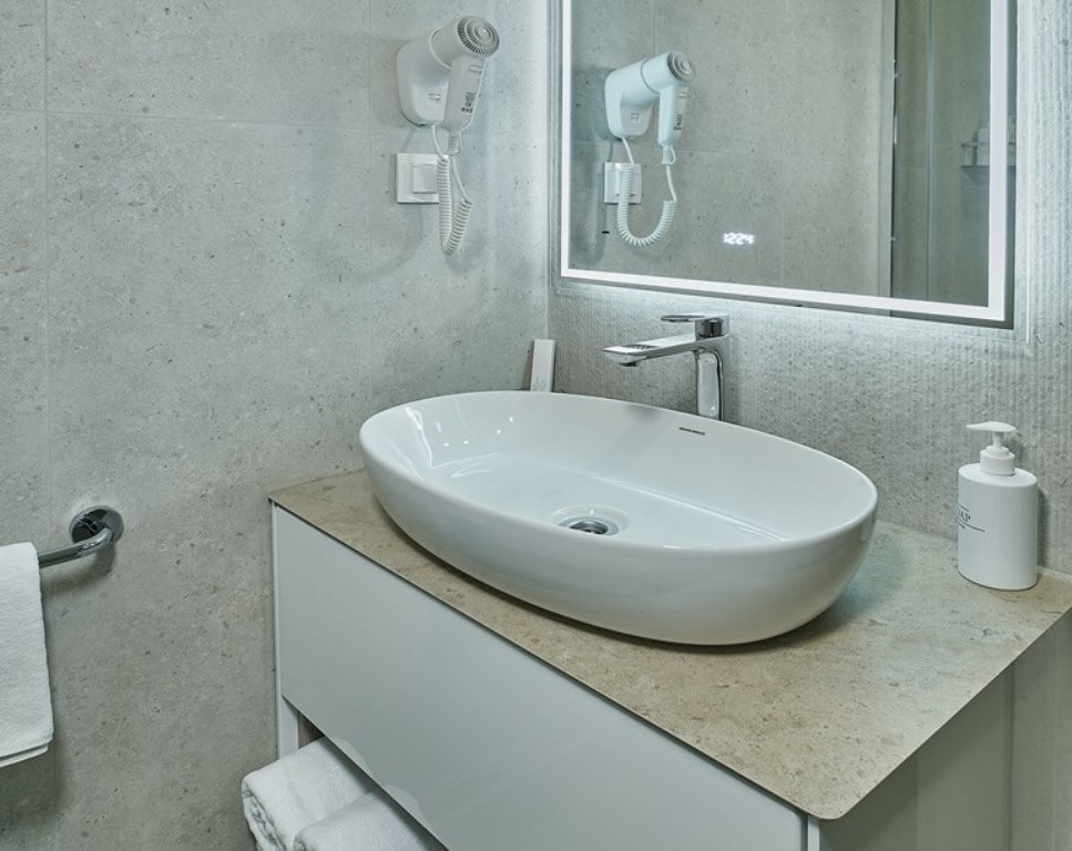 Для размещения гостей предусмотрено 16 номеров, рассчитанных на проживание от 1 до 3 человек. В каждом номере есть кровати, мебель для хранения, телевизор, кондиционер, мини-бар и отдельная ванная комната с душем или ванной. Интерьеры выполнены в современном стиле с использованием светлых тонов и лаконичных деталей.