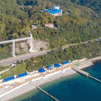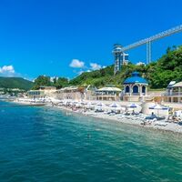 Отель располагает собственным оборудованным пляжем.От главного корпуса до пляжа 250 метров. Длина пляжа 384 метра, ширина – 30 метров, площадь пляжа 11500 м2. Имеется медицинский пост, спасательный пост и вышка, стационарные зонты, аэрарий, шезлонги, игровой комплекс для детей, детский морской клуб. На пляж ведёт лестница – терренкур или лифт.