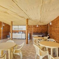 В гостинице работает столовая, а по вечерам отдыхающие могут посетить пивной бар. К услугам гостей открытый бассейн с неглубоким детским отделением, для автовладельцев предусмотрены парковочные места. На побережье есть теневые навесы от солнца, лежаки и шезлонги.