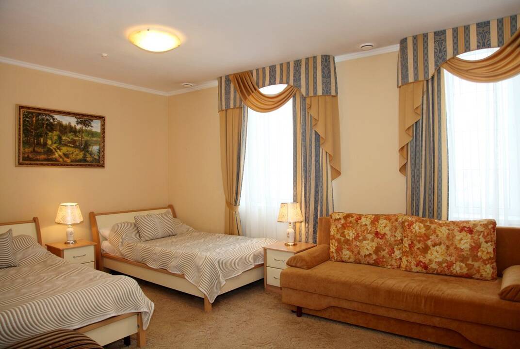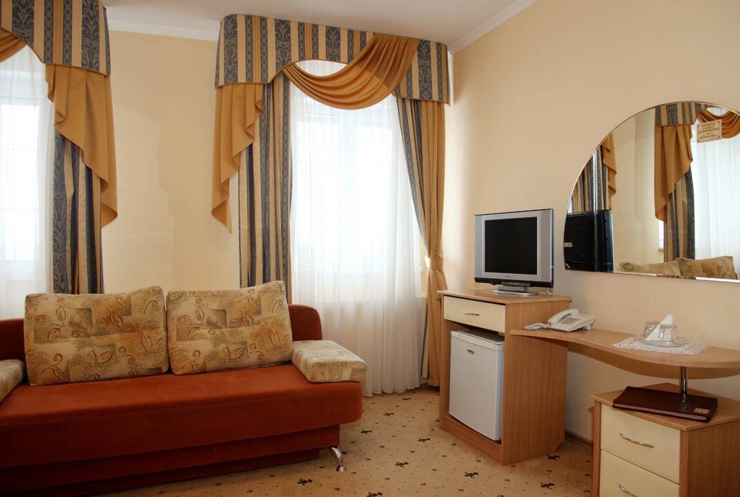 Бесплатный Wi-Fi, Ванная комната, Двусп./2 односп.кровати, Диван-кровать, Журнальный столик, Кондиционер/Сплит-система, Мини-бар, Набор одноразовой косметики, Прикроватная тумбочка, Стаканы, Стол, Стул/Стулья, Тапочки, Телевизор, Телефон, Туалетные принадлежности, Фен, Халат, Холодильник, Шкаф
