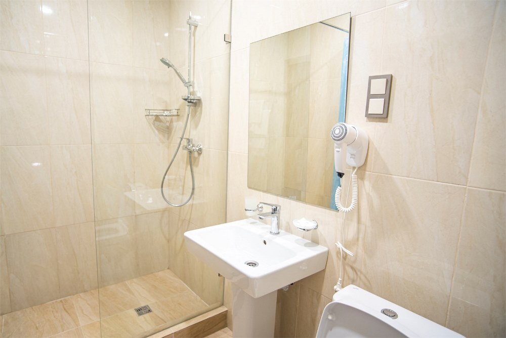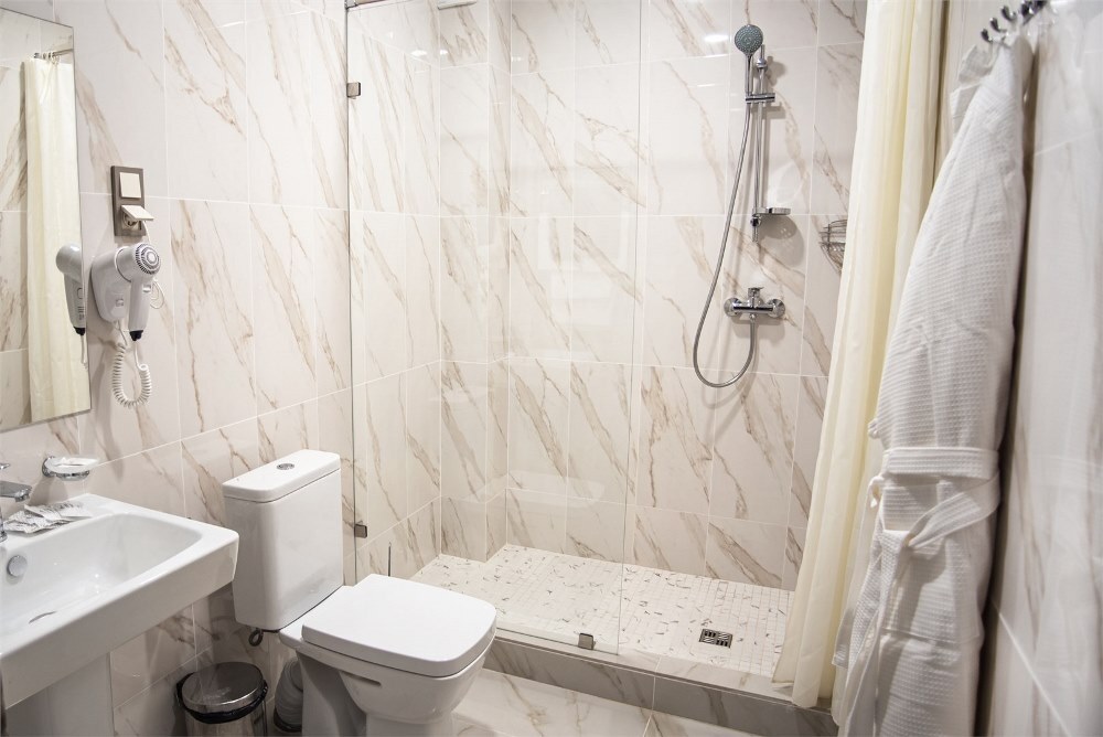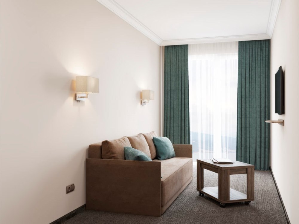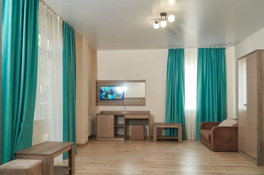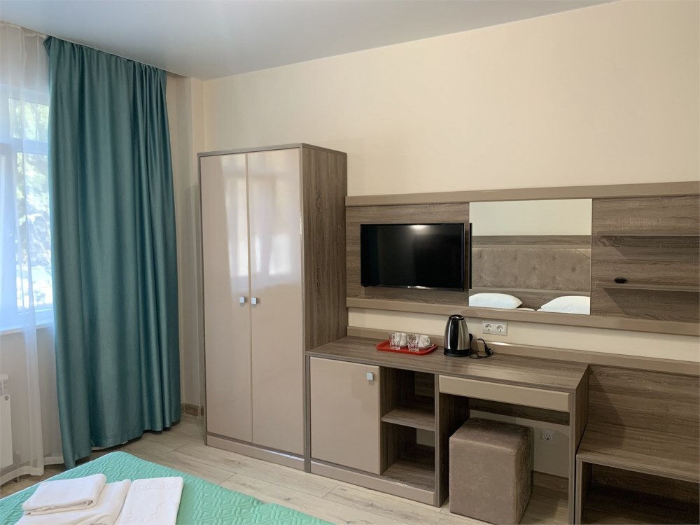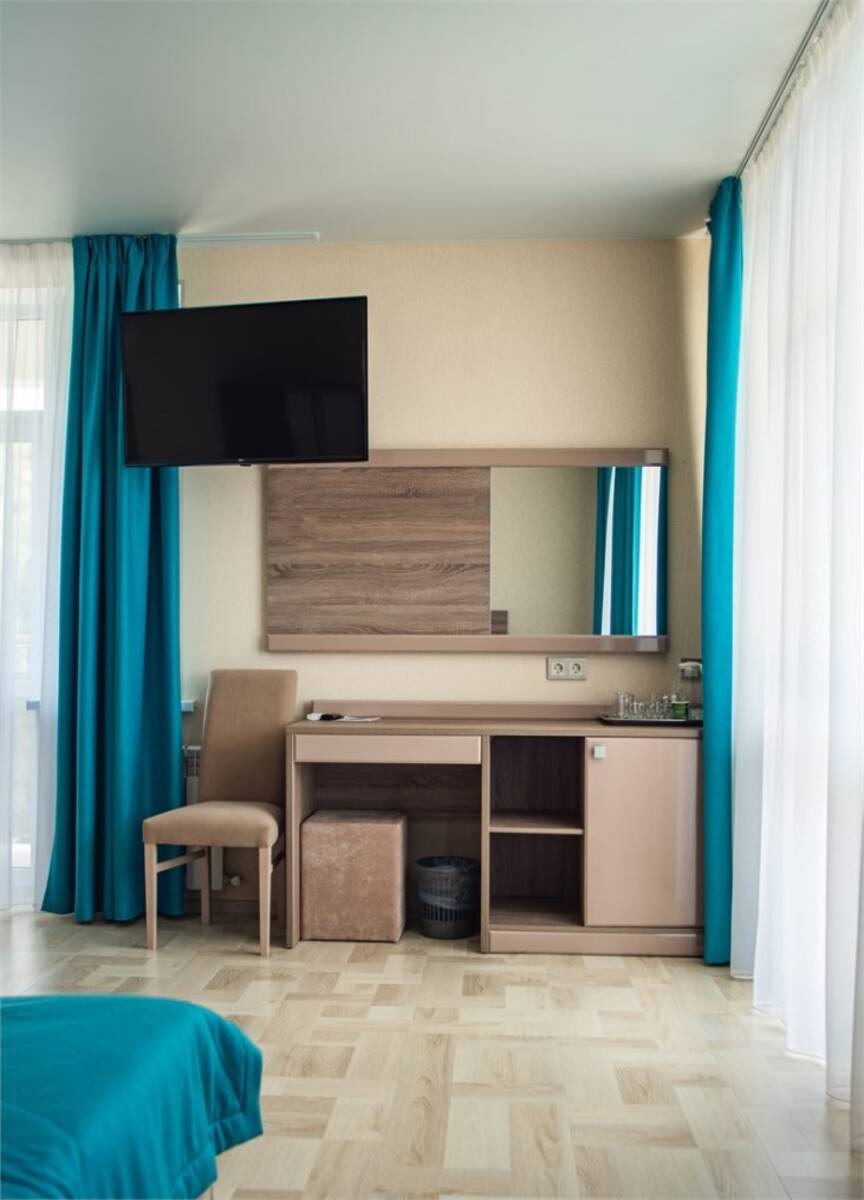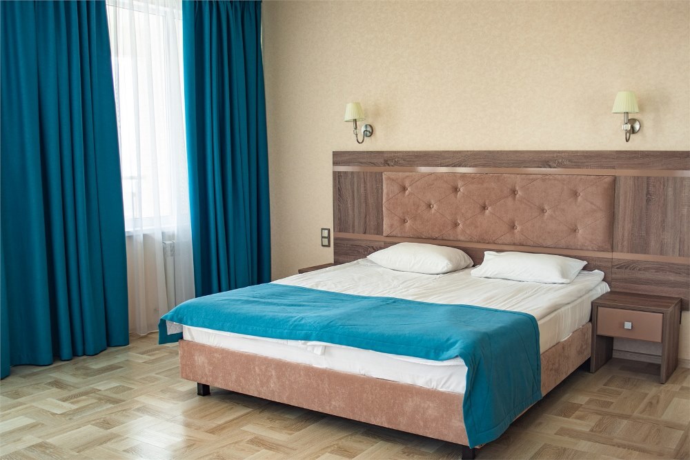 Все номера корпусов светлые, просторные, оборудованы современной техникой, собственным санузлом с ванной или душем, двумя удобными раздельными кроватями, которые при необходимости возможно совместить или 2-спальными кроватями.