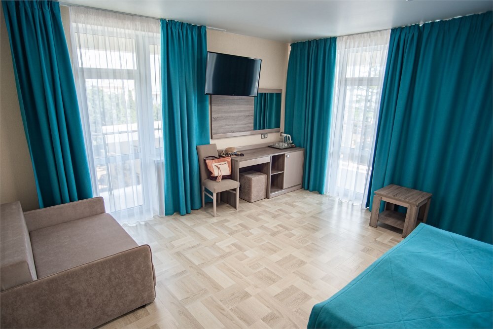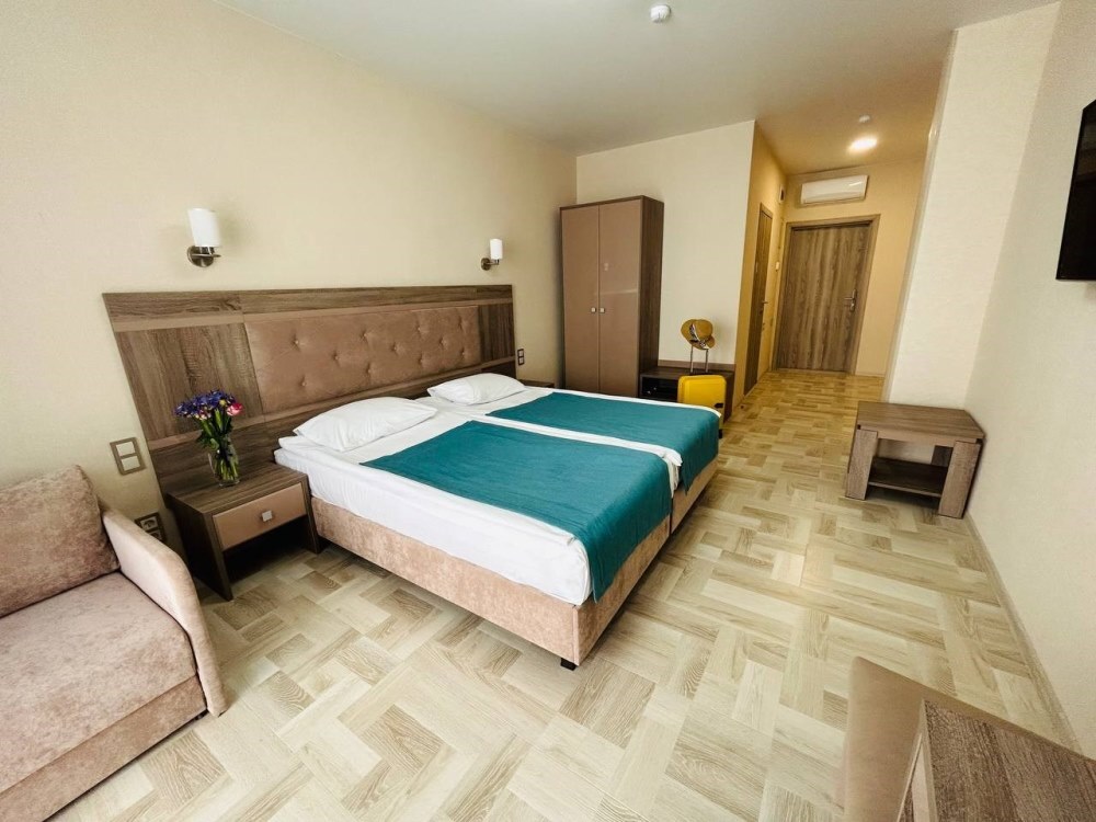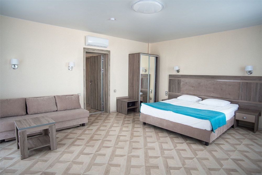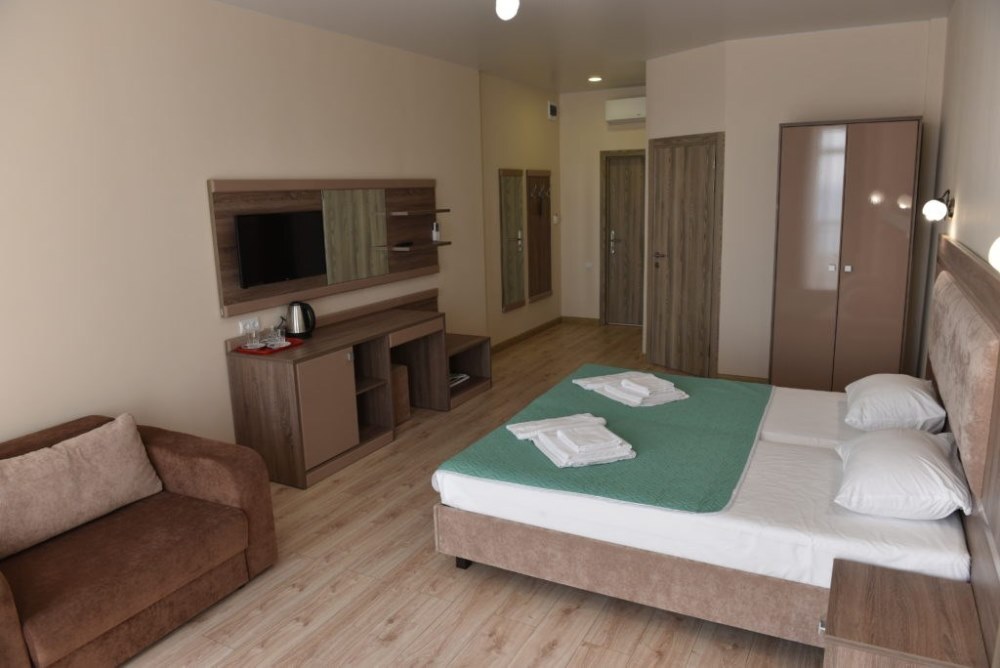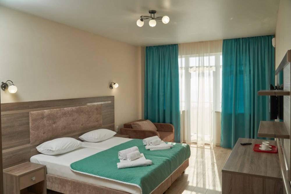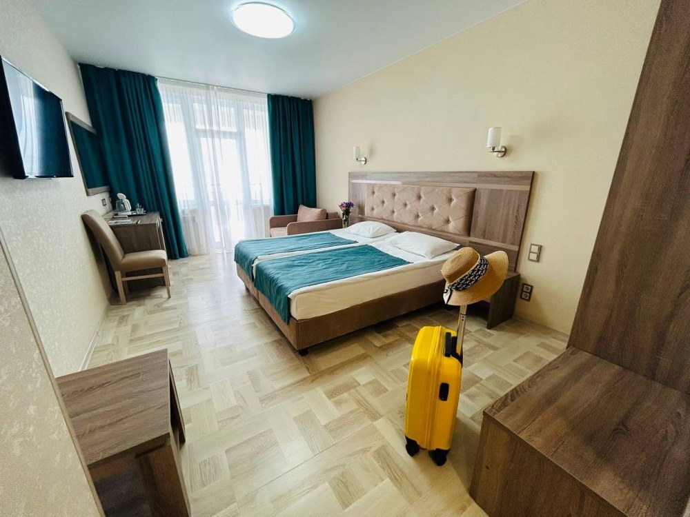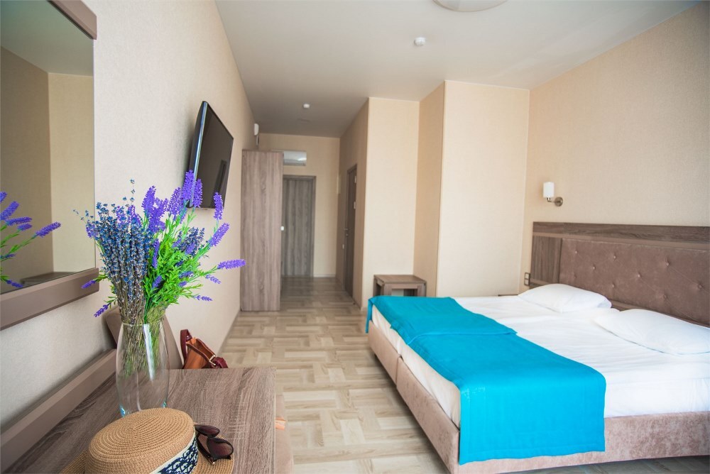 Отель состоит из 2 корпусов, оборудованных лифтами. Корпус №1 был построен в 2019 году. Это трехэтажное здание гостиницы включает в себя 30 номеров категории Комфорт, Комфорт с видом на море и Полулюкс. Корпус № 2 открыт для гостей с 01 июня 2021 года. Это 5-этажное здание, которое включает в себя сто пять комфортабельных номеров категории Комфорт, а так же 2-комнатный Люкс. В обоих корпусах номера расположены со второго этажа. В 1 и 2 корпусах есть номера Комфорт с видом на море.