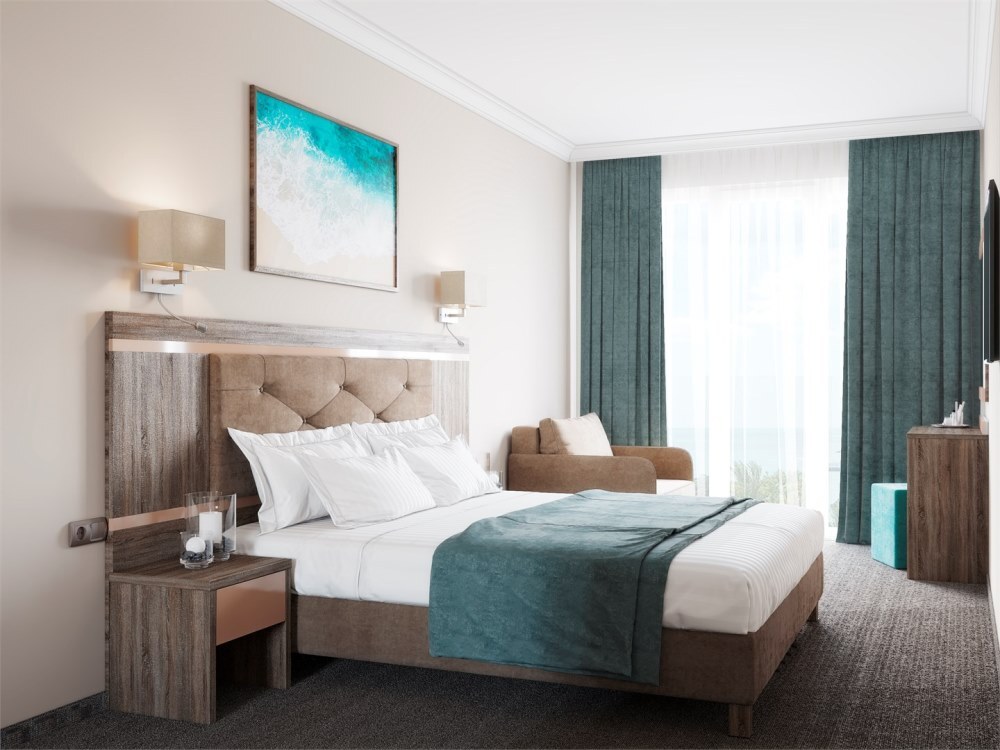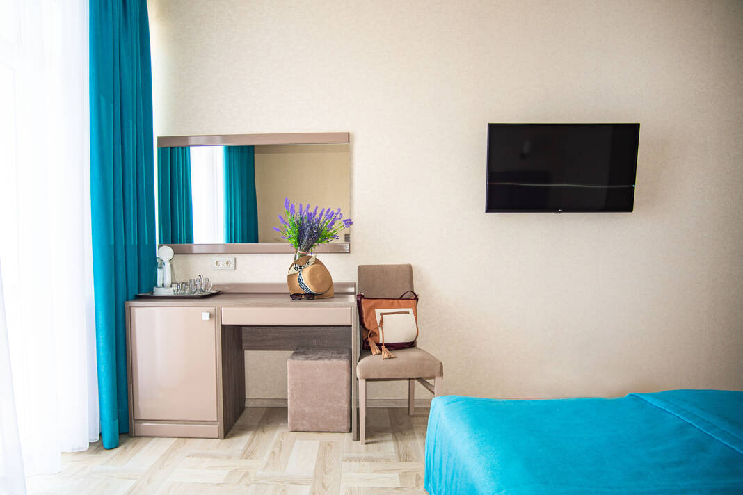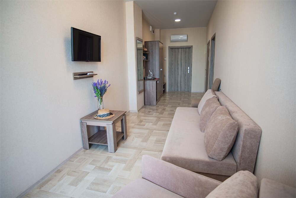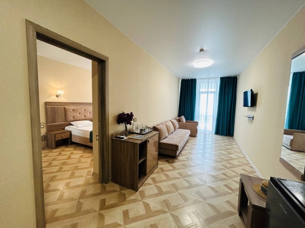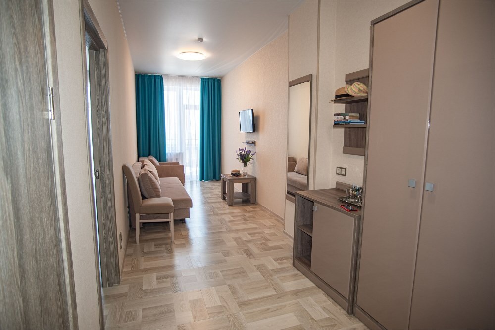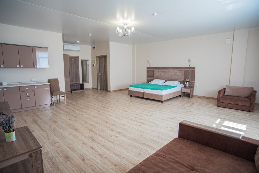 Отель состоит из 2 корпусов, оборудованных лифтами. Корпус №1 был построен в 2019 году. Это трехэтажное здание гостиницы включает в себя 30 номеров категории Комфорт, Комфорт с видом на море и Полулюкс. Корпус № 2 открыт для гостей с 01 июня 2021 года. Это 5-этажное здание, которое включает в себя сто пять комфортабельных номеров категории Комфорт, а так же 2-комнатный Люкс. В обоих корпусах номера расположены со второго этажа. В 1 и 2 корпусах есть номера Комфорт с видом на море.