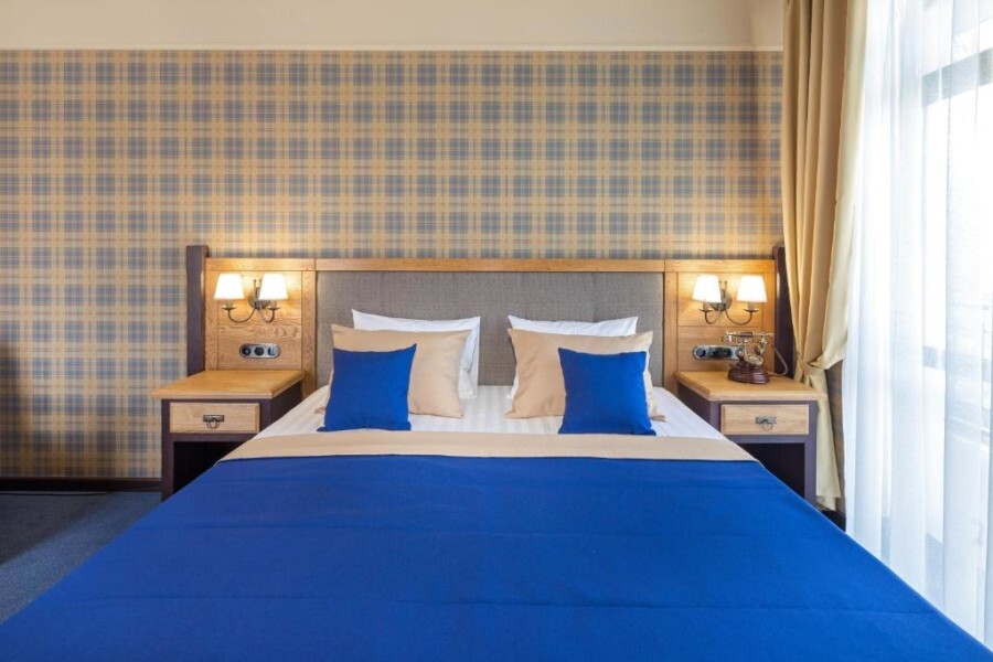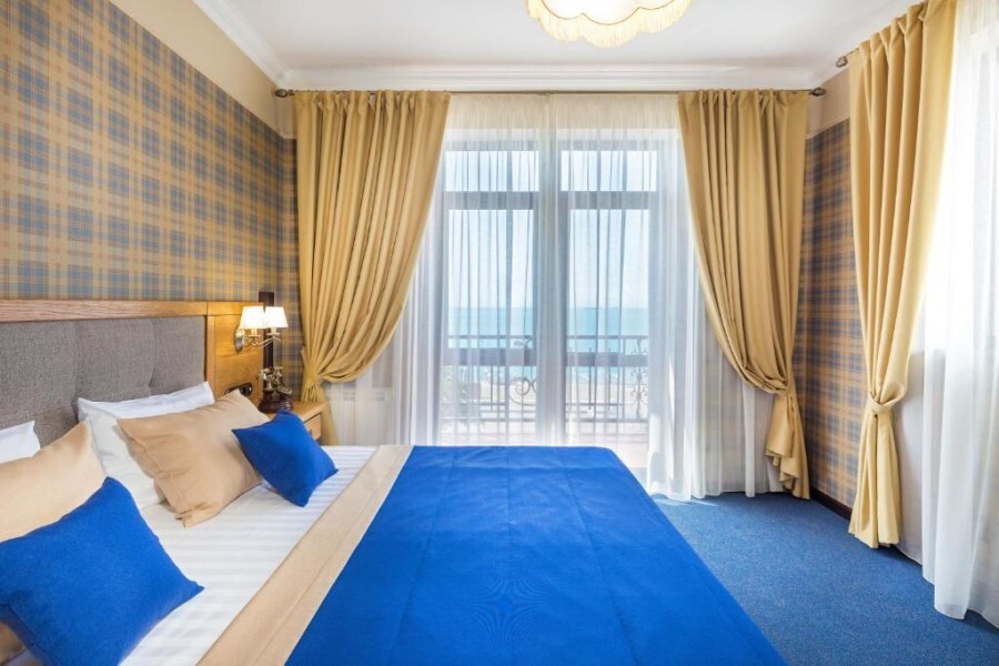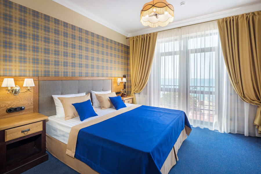 Второй и третий этаж здания занимают номера категорий «Стандарт» с прекрасными видами на море и «Стандарт Комфорт» с видами на горы и аквапарк. Это номера с витражными окнами и с индивидуальными балконами. Интерьер номеров выполнен в классическом стиле с милыми элементами деревенского декора, что придает им неповторимую домашнюю атмосферу. Номера отеля отличаются цветовым решением и элементами декора. Часть номеров предлагается, как семейные - коннект номера.