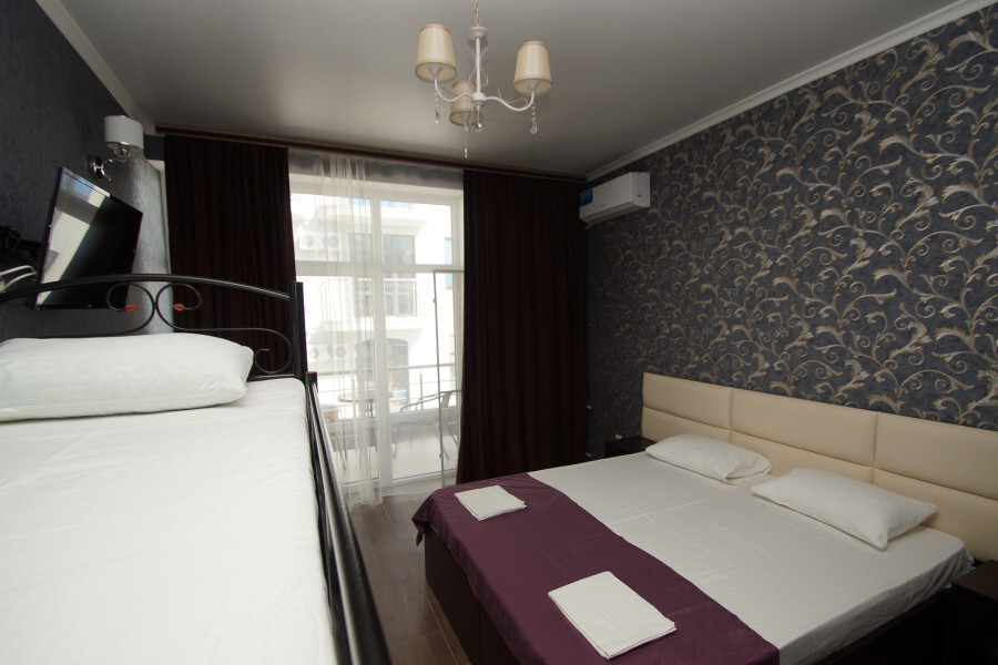 Номера: гостям предлагается проживание в 2-х, 3-х и 4-х местных номерах со всеми удобствами и собственными балконами с местами для отдыха. Есть 2-х комнатные номера. Большинство номеров с видом на море.