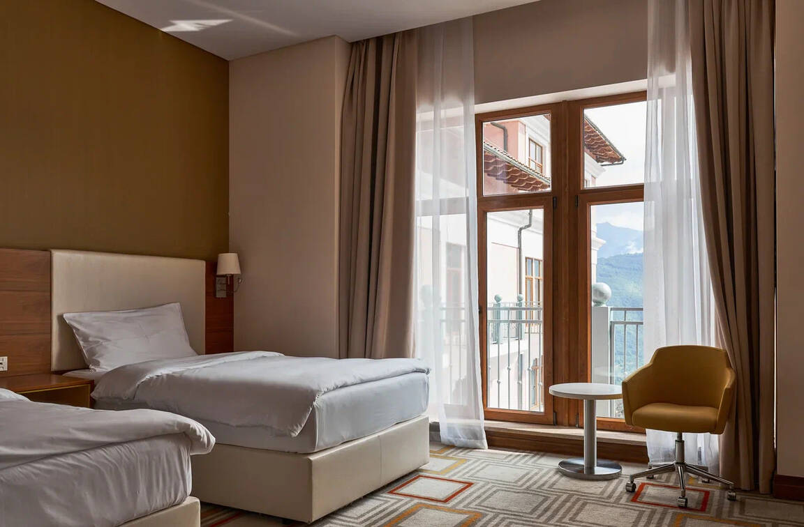 Летний отдых на море и в горах одновременно доступен гостям отеля благодаря ежедневному трансферу на пляж курорта на Черном море в Имеретинской низменности. Дорога в комфортабельных автобусах занимает всего 40 минут.