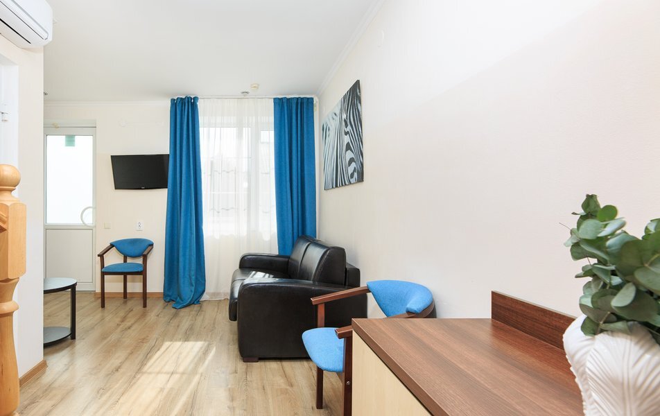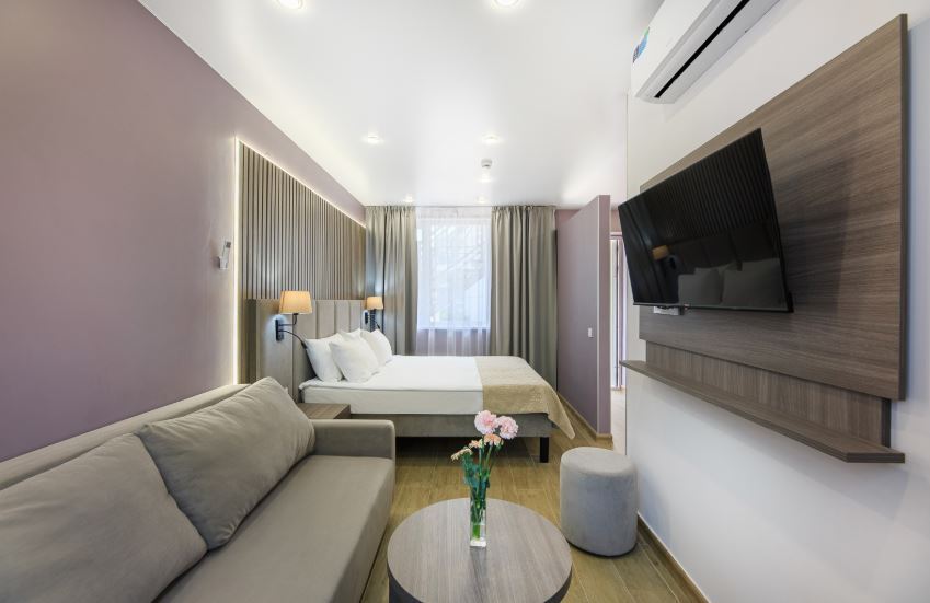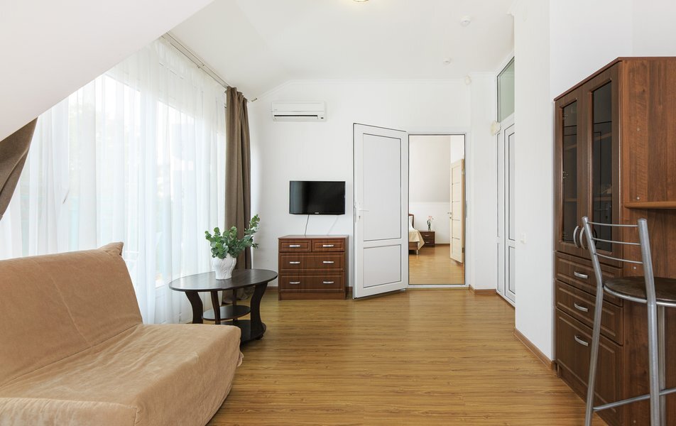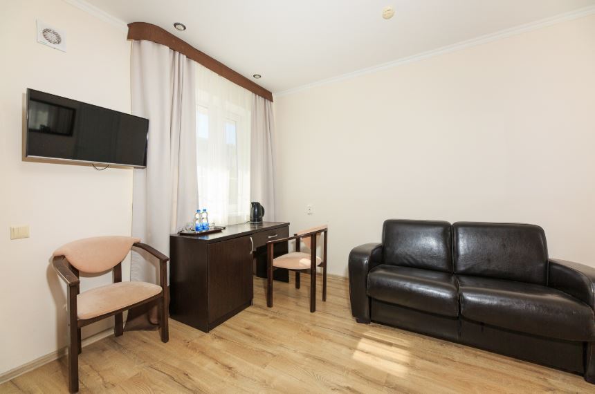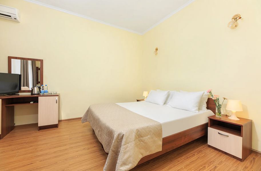 В каждом имеется ванная комната, кондиционер, спасающий от южной жары, электрочайник и плазменный телевизор.