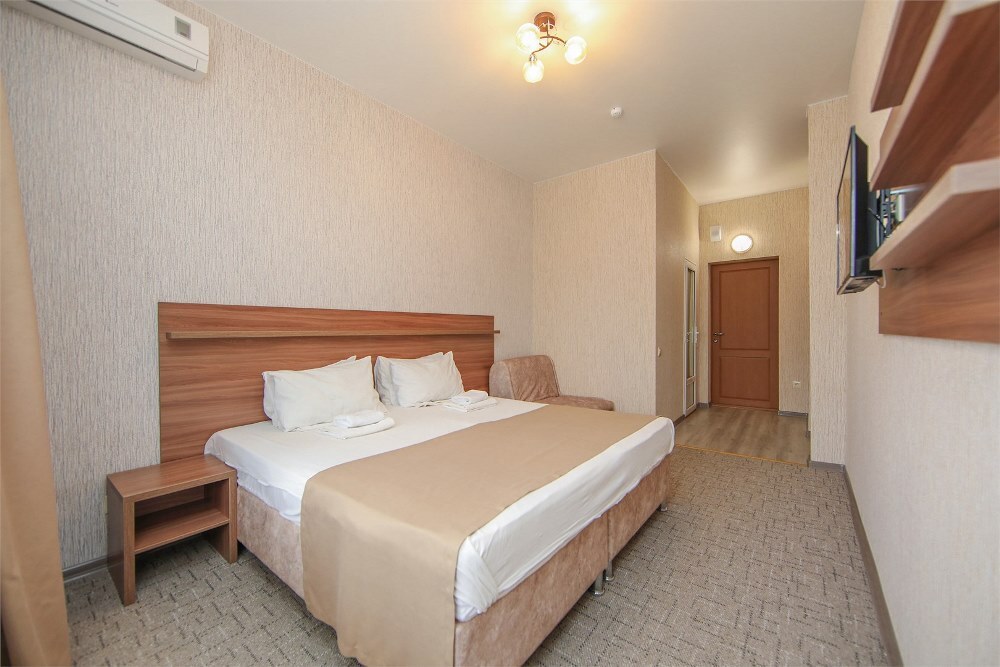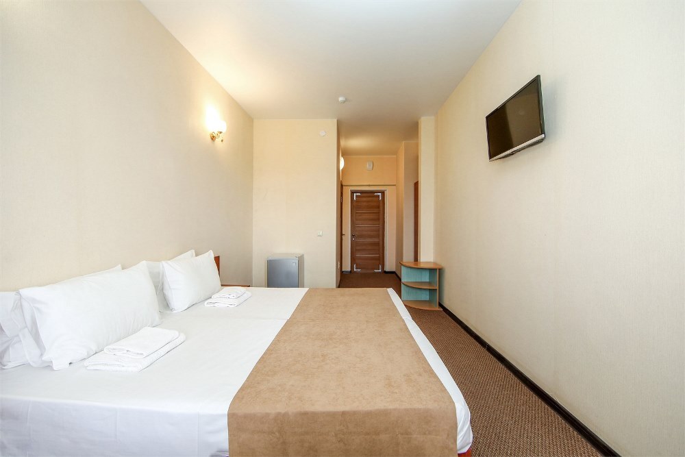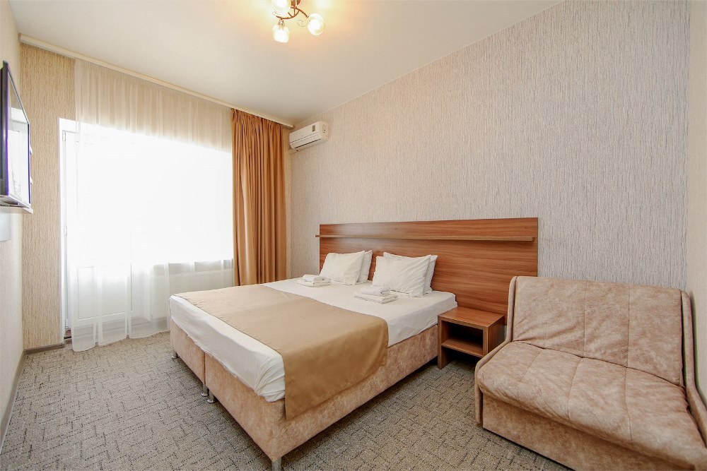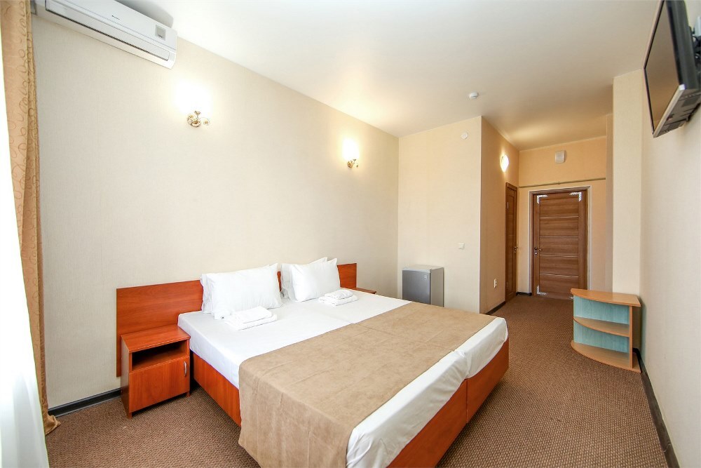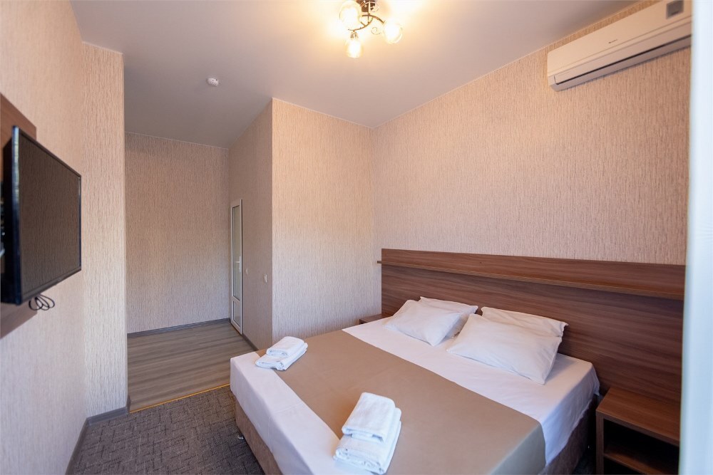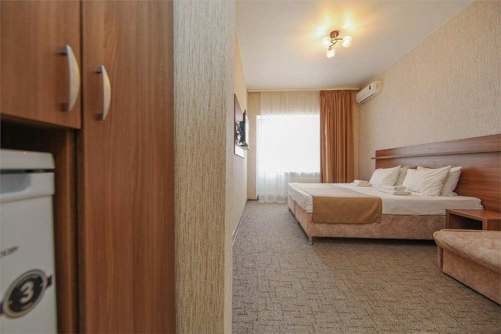 Отель предлагает размещение в 140 номерах пятиэтажного корпуса «Family», который включает стандартные и улучшенные категории. Номера оборудованы всем необходимыми для комфортного отдыха: санузлом с душевой кабиной, телевизором, холодильником и системой кондиционирования воздуха. Из номеров на верхних этажах открывается вид на озеро Мойнаки и море.