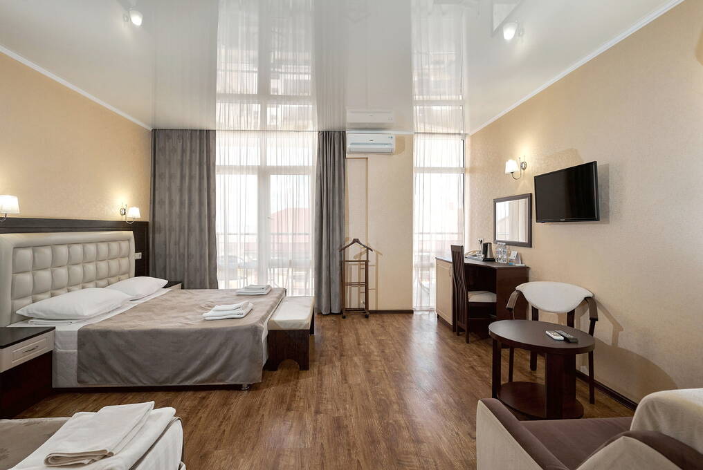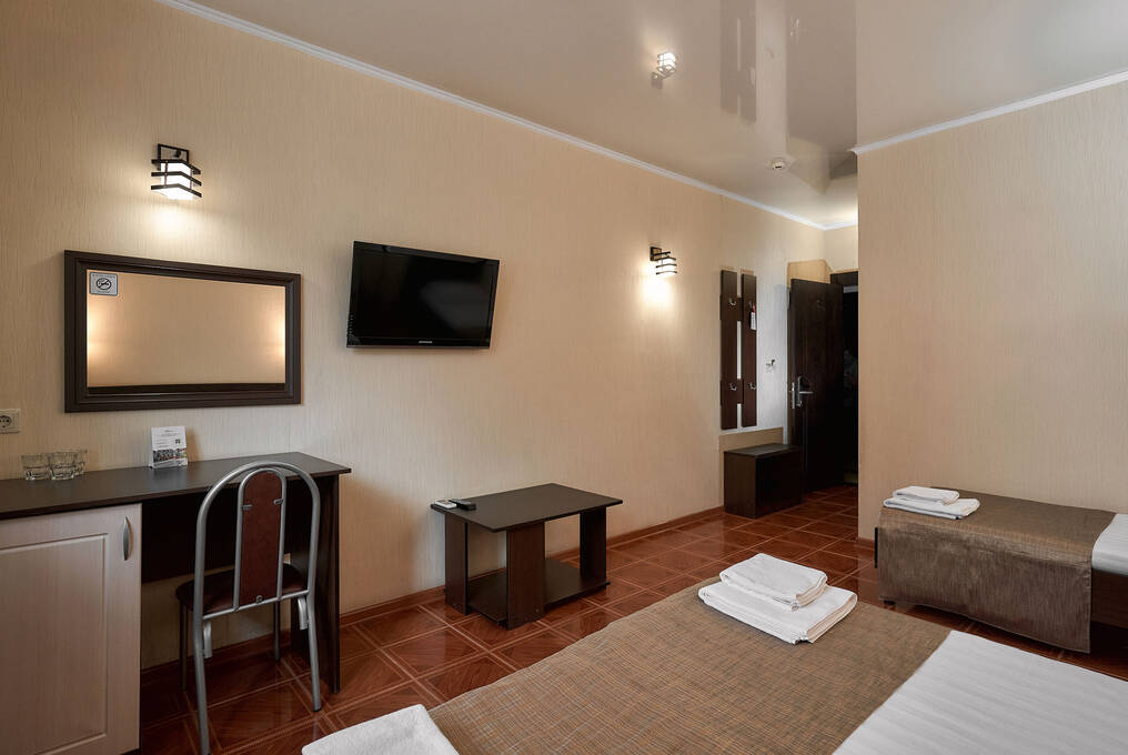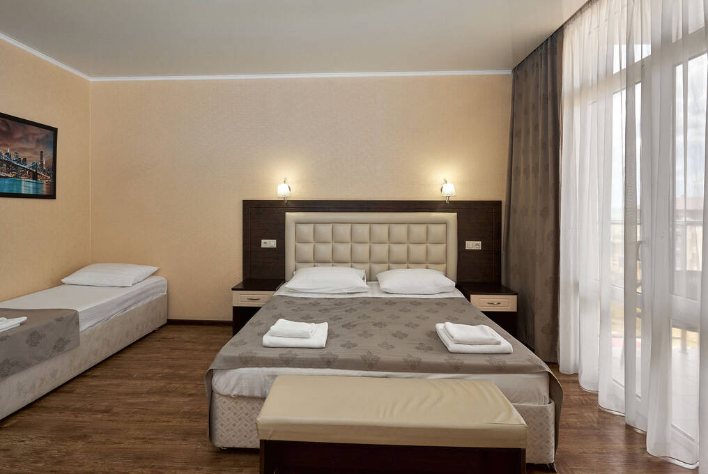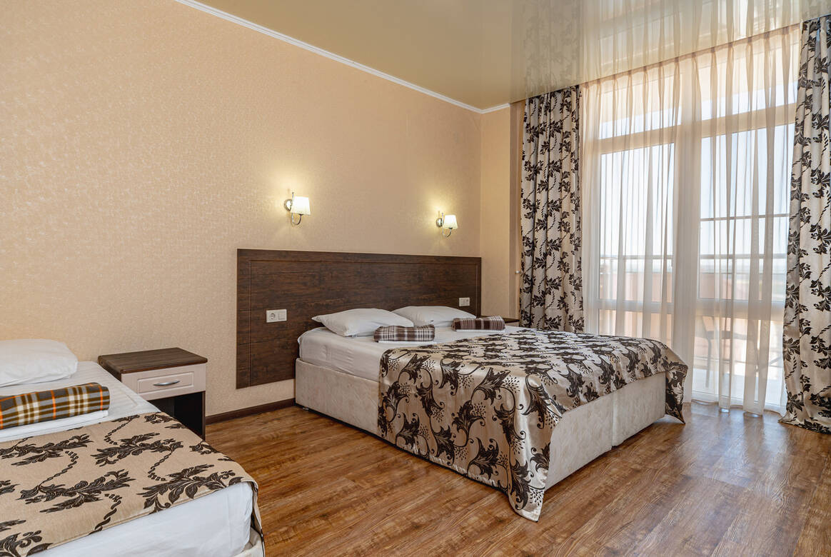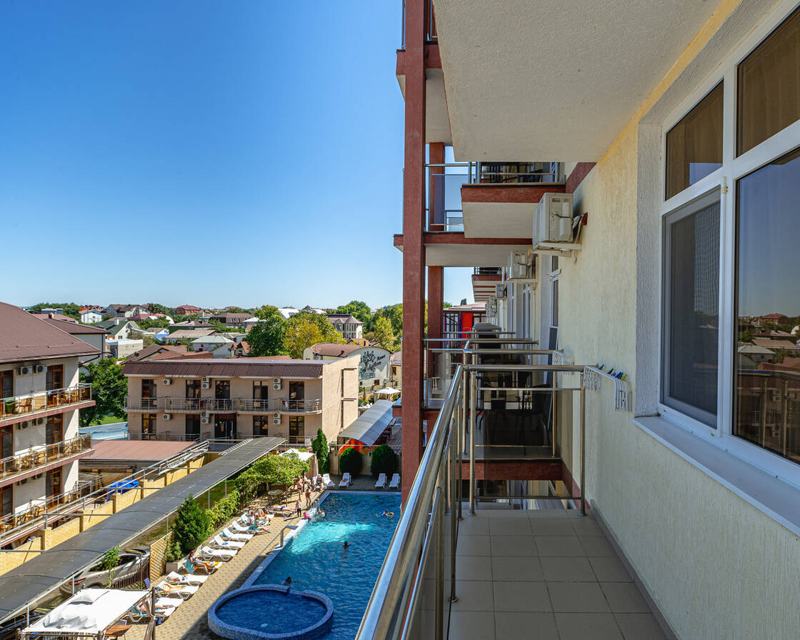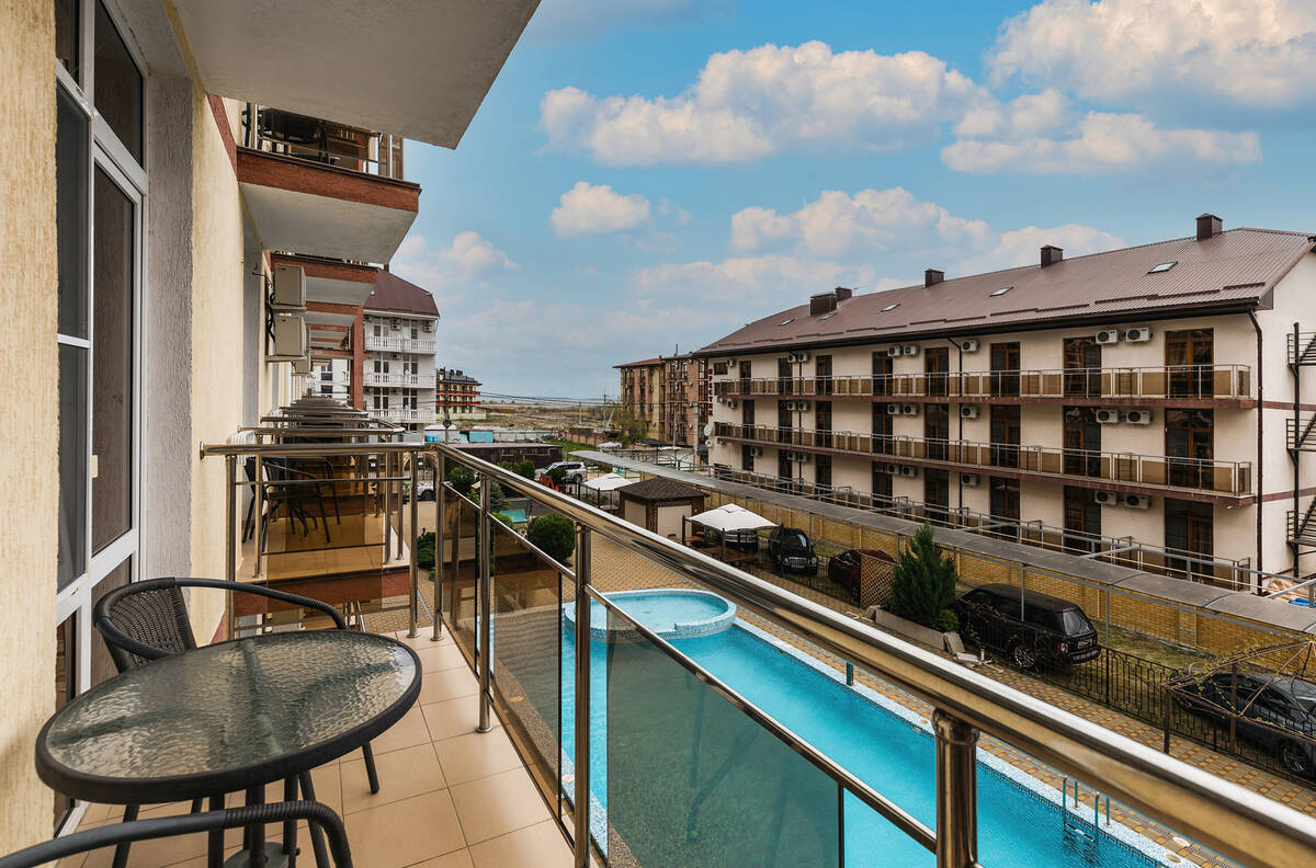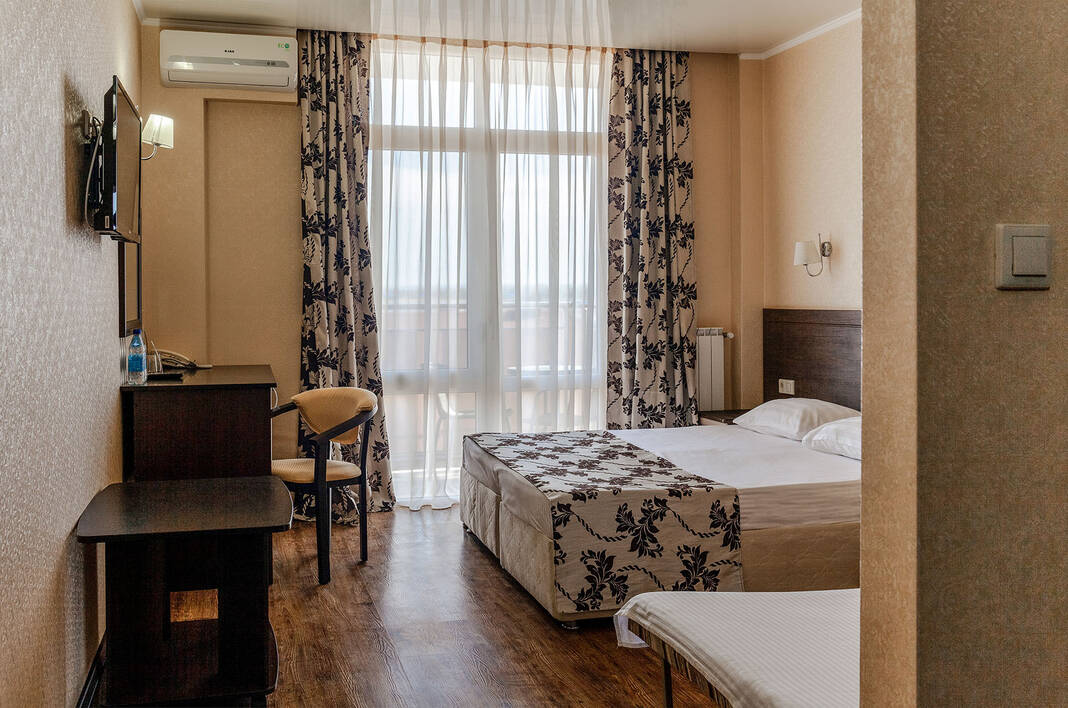 Круглогодичный отель «Гала Пальмира» – это трехзвездочный отель 2013 года постройки расположенный в черноморском поселке Витязево (район Анапы, Краснодарский край). Рядом – спорткомплекс «Витязь» и крупнейший на побережье боулинг-центр. В современном 6-этажном здании оригинального дизайна – комфортабельные номера со в семи удобствами. На всей территории отеля– работает WI-FI. Также гости могут пользоваться автостоянкой и услугами прачечной. Отель «Гала Пальмира» (Витязево) располагает просторным подогреваемым сезонным бассейном c водопадом, а также лаунж-зоной вокруг – с шезлонгами и беседками. Кормят в отеле «Гала Пальмира» (Витязево) вкусно и разнообразно. На первом этаже корпуса – столовая и кафе с европейской, кавказской, украинской и средиземноморской кухней. Для юных гостей есть детское меню, а также выделенная зона в бассейне, аттракционы, батут и детская площадка. До песчаного поселкового пляжа – 800 метров. Это в пешей доступности – до 10 минут ходьбы. Есть прокат лежаков, шезлонгов и зонтов.