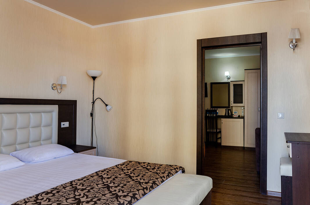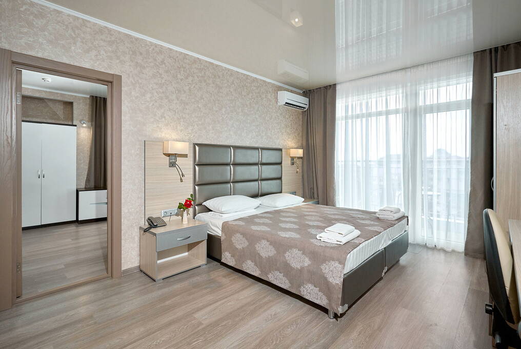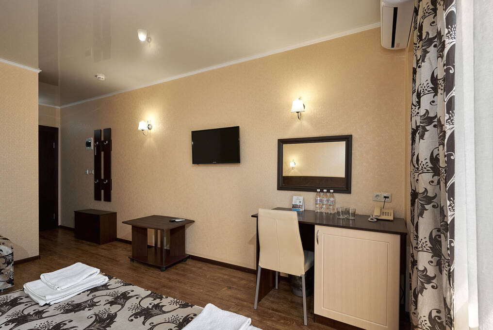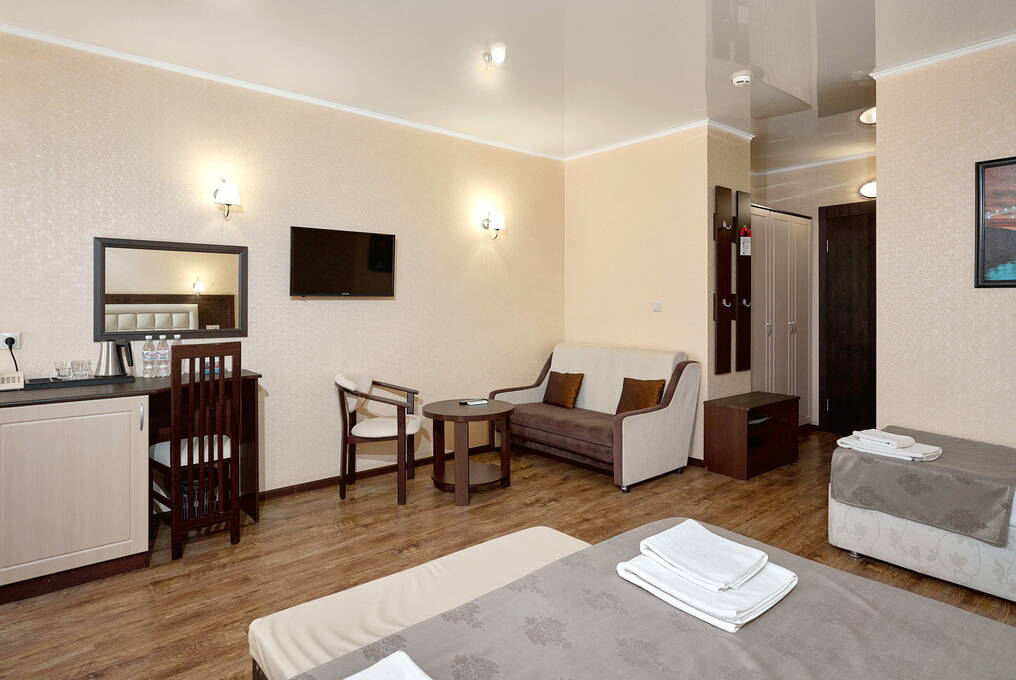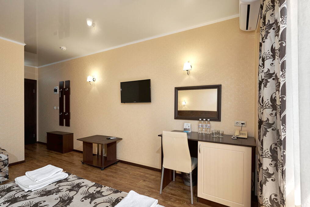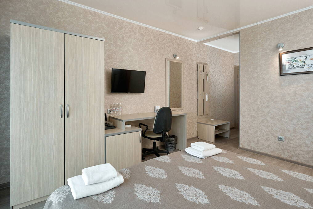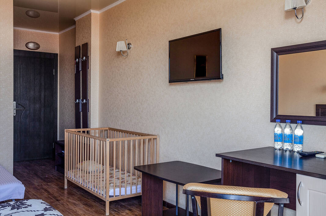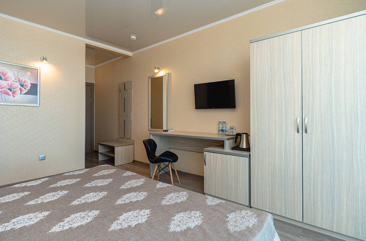 Круглогодичный отель «Гала Пальмира» – это трехзвездочный отель 2013 года постройки расположенный в черноморском поселке Витязево (район Анапы, Краснодарский край). Рядом – спорткомплекс «Витязь» и крупнейший на побережье боулинг-центр. В современном 6-этажном здании оригинального дизайна – комфортабельные номера со в семи удобствами. На всей территории отеля– работает WI-FI. Также гости могут пользоваться автостоянкой и услугами прачечной. Отель «Гала Пальмира» (Витязево) располагает просторным подогреваемым сезонным бассейном c водопадом, а также лаунж-зоной вокруг – с шезлонгами и беседками. Кормят в отеле «Гала Пальмира» (Витязево) вкусно и разнообразно. На первом этаже корпуса – столовая и кафе с европейской, кавказской, украинской и средиземноморской кухней. Для юных гостей есть детское меню, а также выделенная зона в бассейне, аттракционы, батут и детская площадка. До песчаного поселкового пляжа – 800 метров. Это в пешей доступности – до 10 минут ходьбы. Есть прокат лежаков, шезлонгов и зонтов.