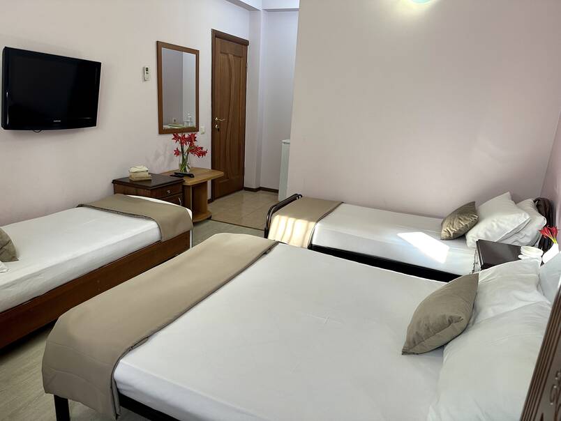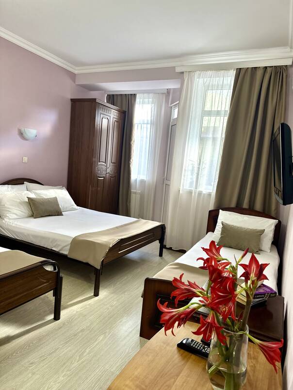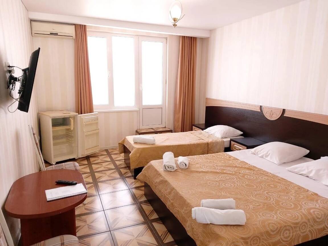 Четырехэтажное здание отеля находится в микрорайоне Горный воздух всего в 250 метрах от моря. В распоряжении гостей однокомнатные и двухкомнатные номера, в общей сложности рассчитанные на размещение 100 человек. В каждом номере предусмотрен санузел с душем, установлен кондиционер.