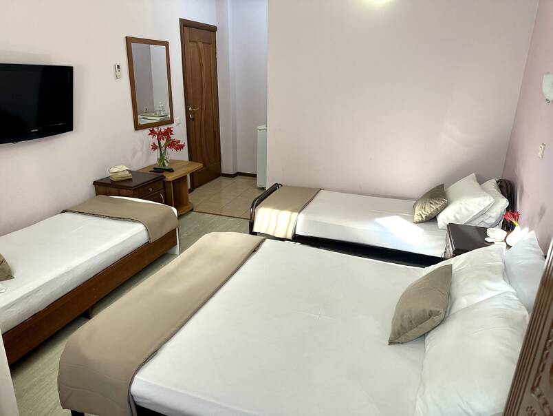 На территории отеля работает столовая, есть летняя кухня и организована зона отдыха со столиками. К услугам отдыхающих – два бассейна, работающих сезонно, один из них – детский. Среди прочих удобств – парковка, оснащенная камерами видеонаблюдения, безлимитный интернет. А всего в 5 минутах ходьбы – живописный галечный пляж.