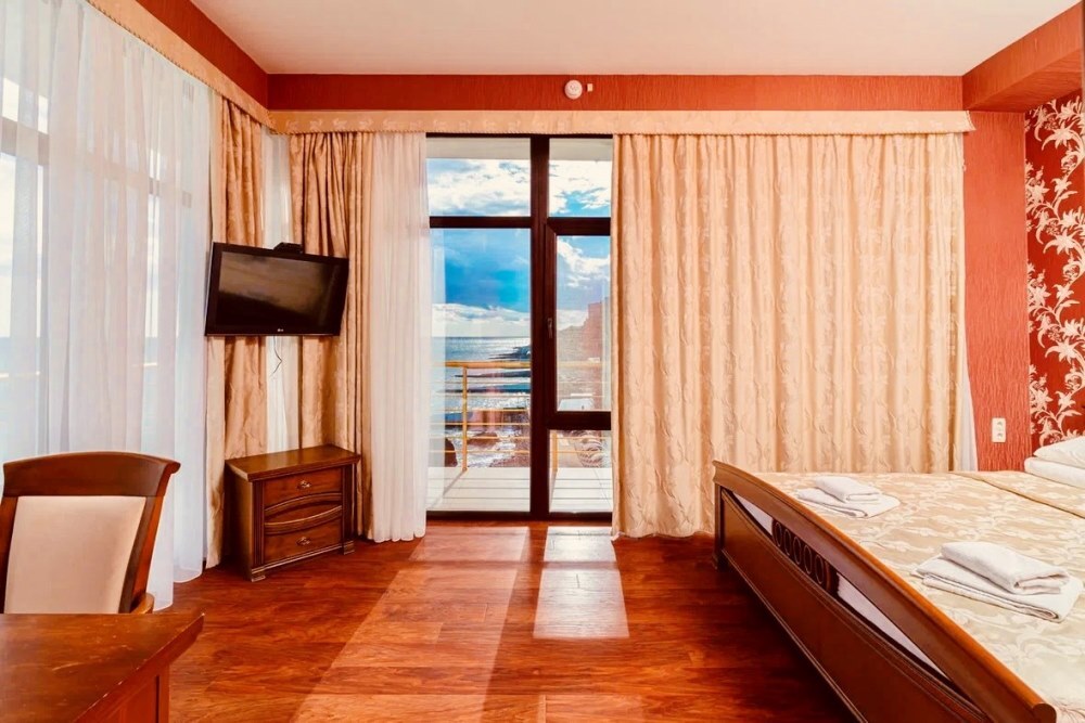 ОТЕЛЬ КАЛИПСО Алушта расположен на берегу Черного моря, в 55 минутах езды от аэропорта г.Симферополь. В распоряжении гостей собственный мелкогалечный пляж, спуск на который осуществляется на лифте, оборудованный зонтами и шезлонгами. Для любителей активного отдыха администраторы помогут подобрать экскурсионную программу, морскую прогулку, спортивные развлечения или организовать тихий романтический ужин на берегу моря.
