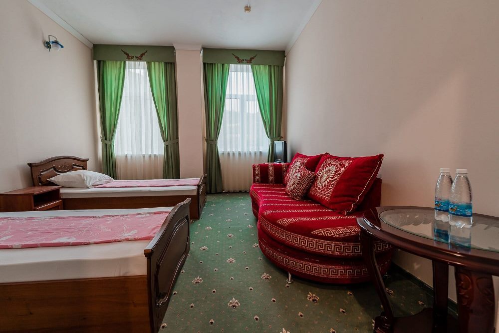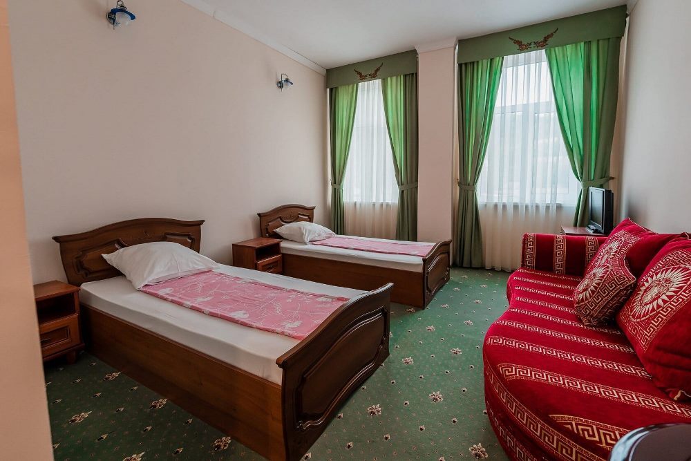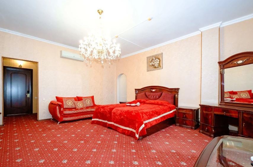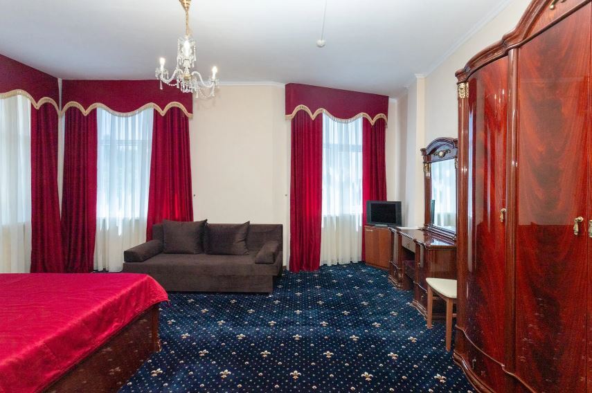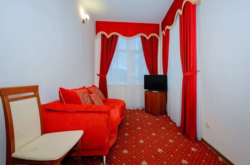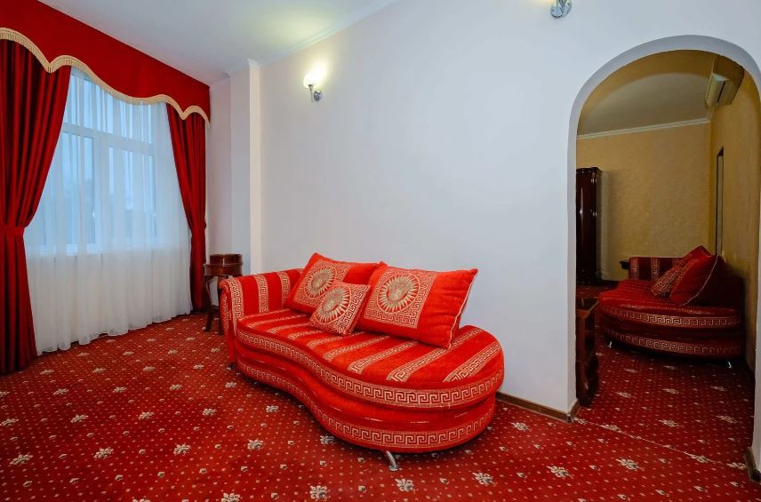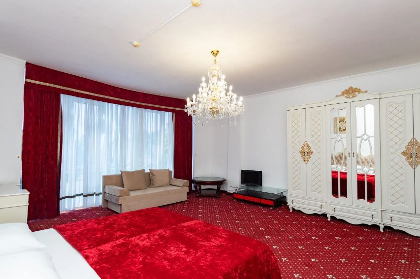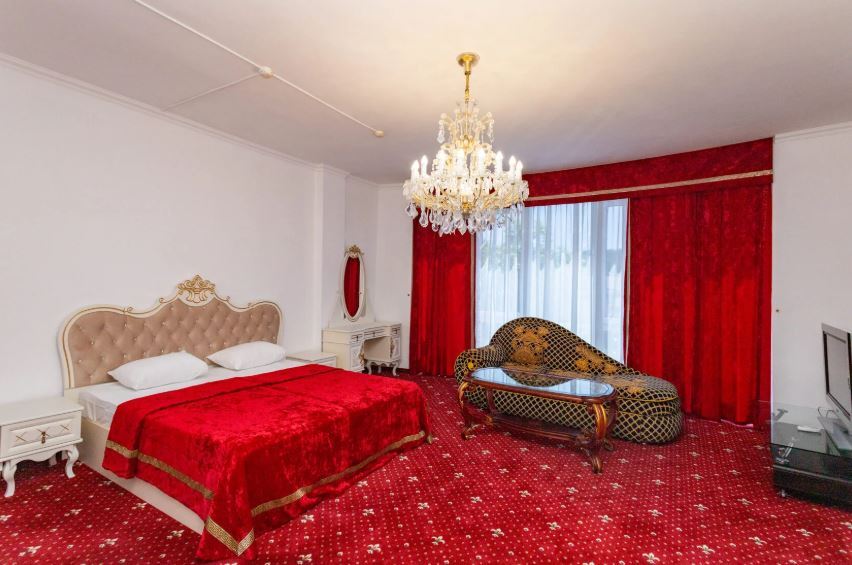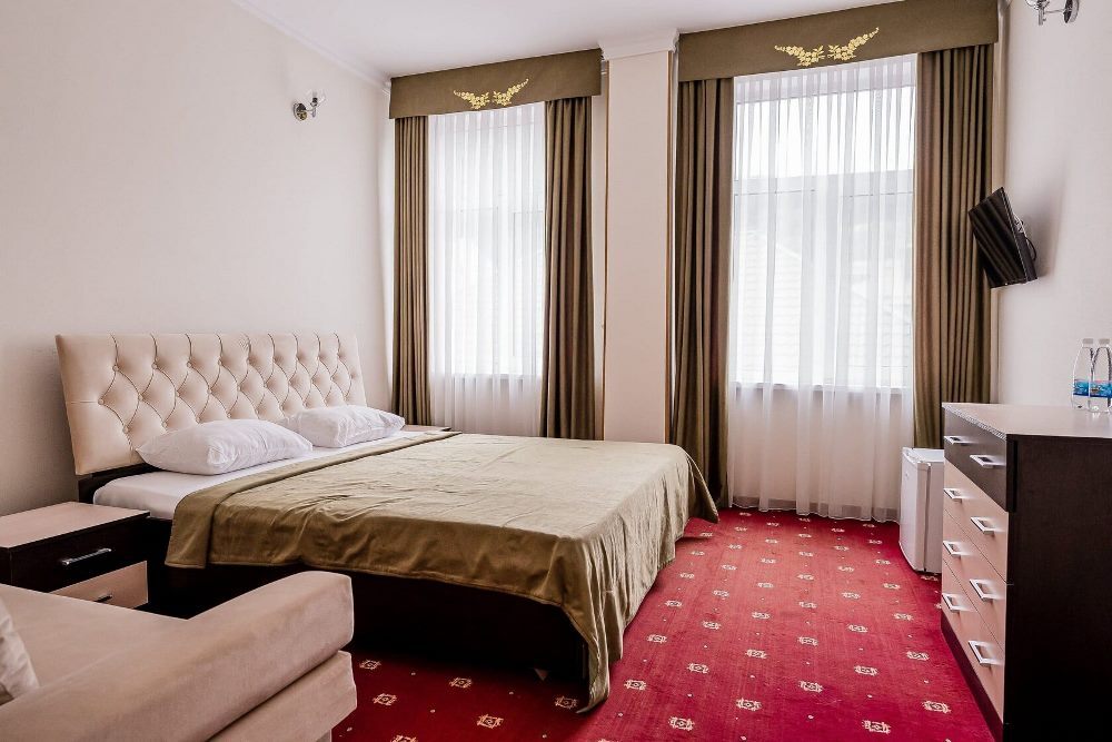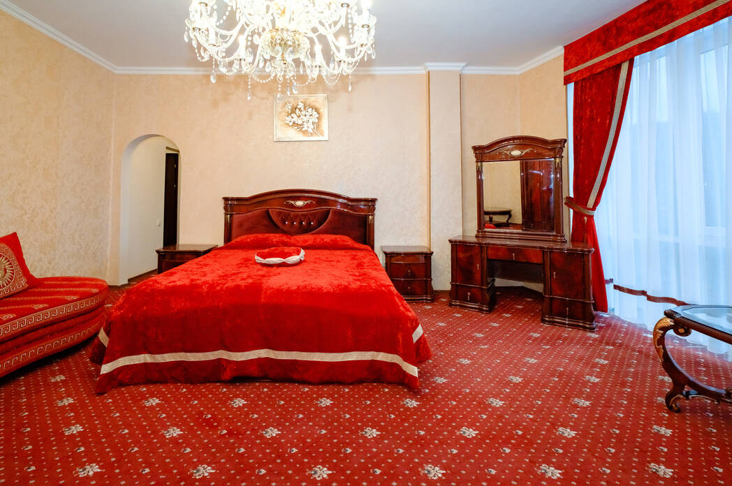 Отель занимает небольшую благоустроенную территорию, жилой фонд включает 90 номеров разной категории комфорта. Номера, выдержанны в классическом стиле, снащены всем необходимым — есть кондиционер, плазменный телевизор. В ванной комнате установлена душевая кабина, для гостей подготовлен набор косметических принадлежностей.