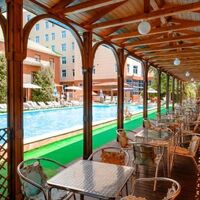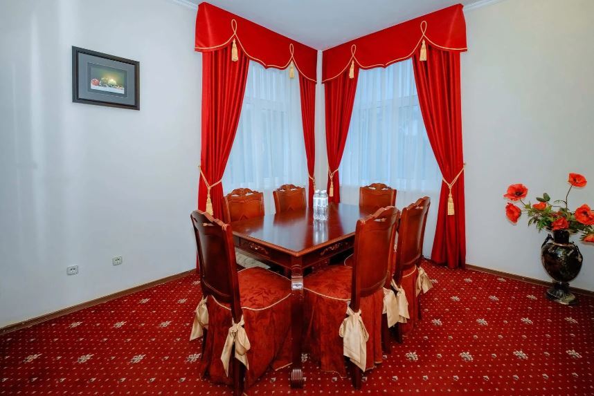 На первом этаже гостиницы работает ресторан с европейской кухней, рассчитанный на 120 мест, оборудована зона для барбекю с мангалом. В восточном дворике отеля расположен открытый бассейн с гидромассажным, вокруг бассейна установлены летние беседки, есть настольный теннис. В числе услуг — охраняемая парковка и беспроводной интернет в общественных зонах.