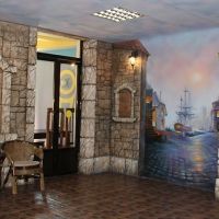 Четырёхэтажное здание «Корсара» имеет необычный вид. Его внутреннее убранство так же живописно и интересно, в нём немало элементов морской и пиратской тематики: картины, настенные панно, скульптуры, детали пиратской атрибутики. Так же тщательно продумано оформление небольшого дворика отеля. Он необыкновенно привлекателен для семей с детьми, молодёжи, влюблённых пар. Цены за номера и другие платные услуги отличаются демократичной скромностью.