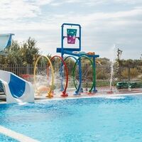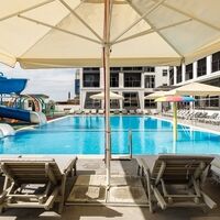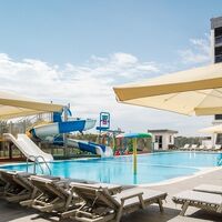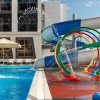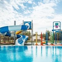 На территории имеются взрослый и детский подогреваемые бассейны с пресной водой, аквагоркой для детей и spray park. В течение дня в аквазоне проводятся анимационные мероприятия.
