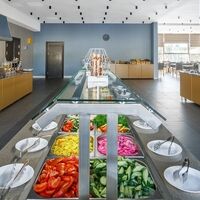 • питание по системе «ULTRA Всё включено»: 3-х разовое питание по системе «шведский стол» с детским меню, промежуточное питание: снеки, закуски, выпечка собственного производства, бар с алкогольными и безалкогольными напитками. На шведской линии во время обеда и ужина предоставляются охлажденные вина 4-х видов региональных виноделов (красные/белые, сухие/полусладкие);