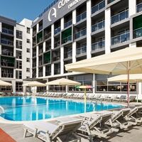 У отеля удобное местоположение: первая береговая линия и в шаговой доступности основные развлекательные места курорта - кафе, дискотеки, парк развлечений и аквапарк, а всего за 20 минут можно доехать до вокзала.