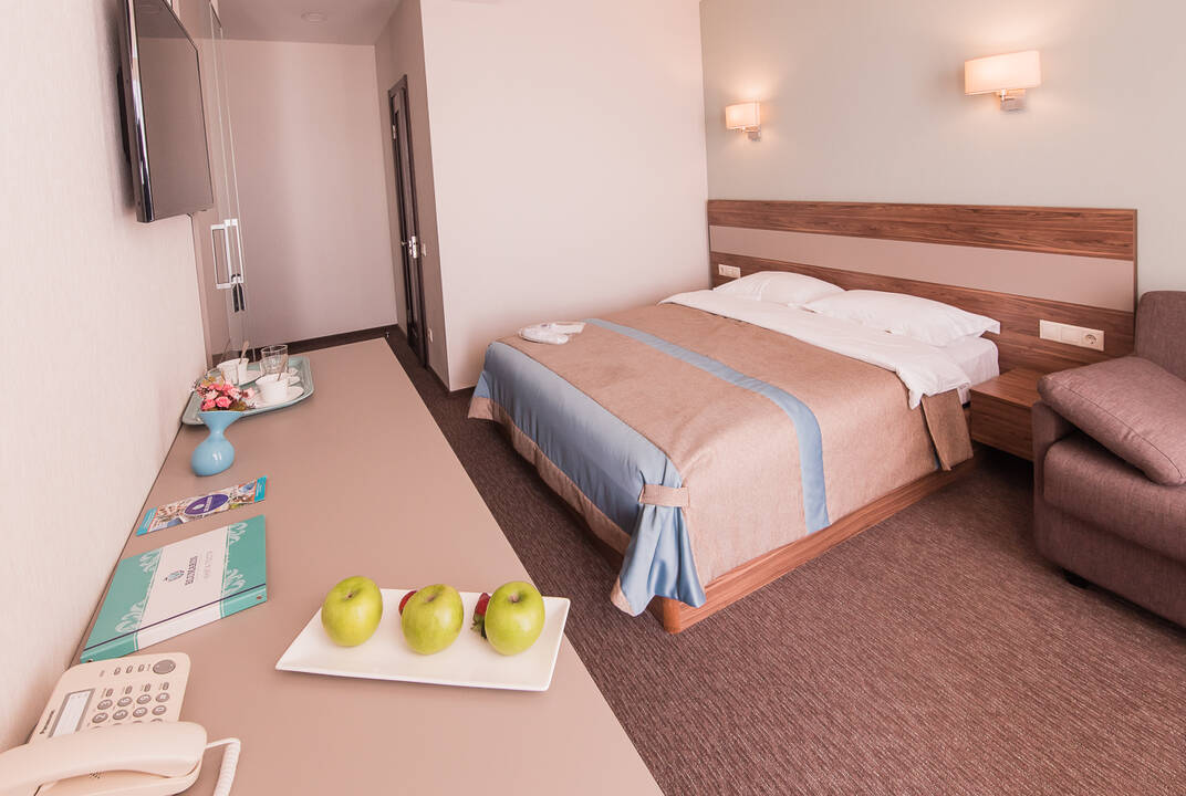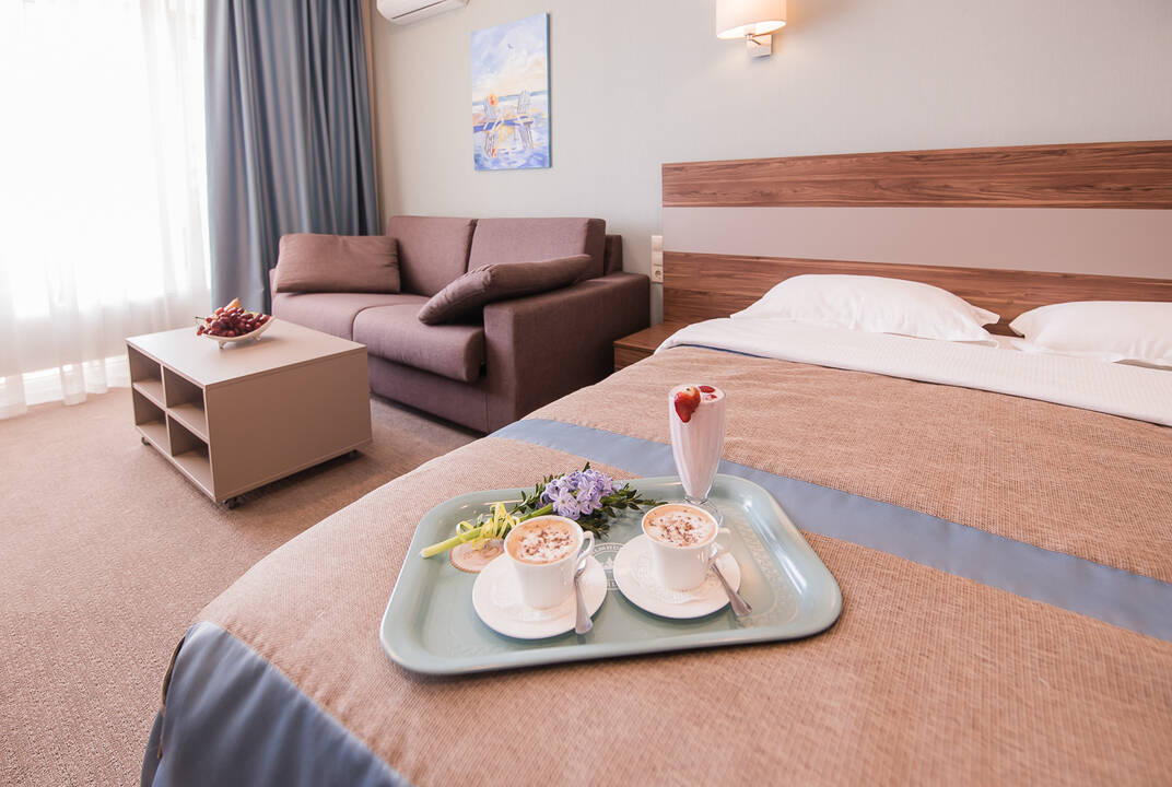 Питание отдыхающих зависит от выбранного ими пакета услуг. Для детей создано специальное детское меню. В обеденном зале есть стульчики для кормления.