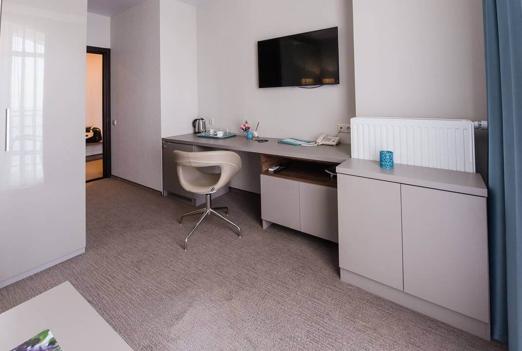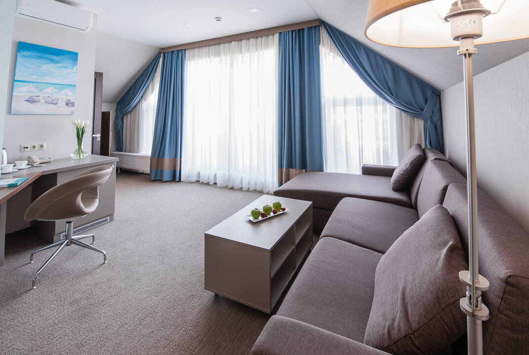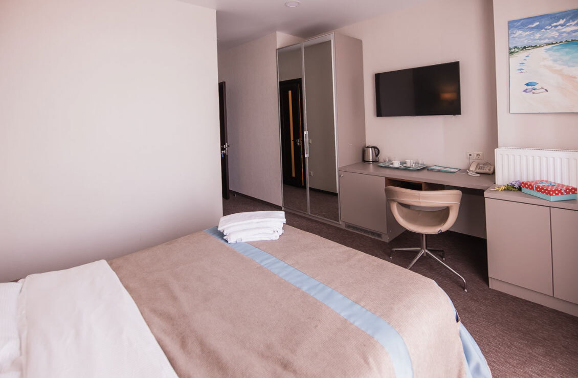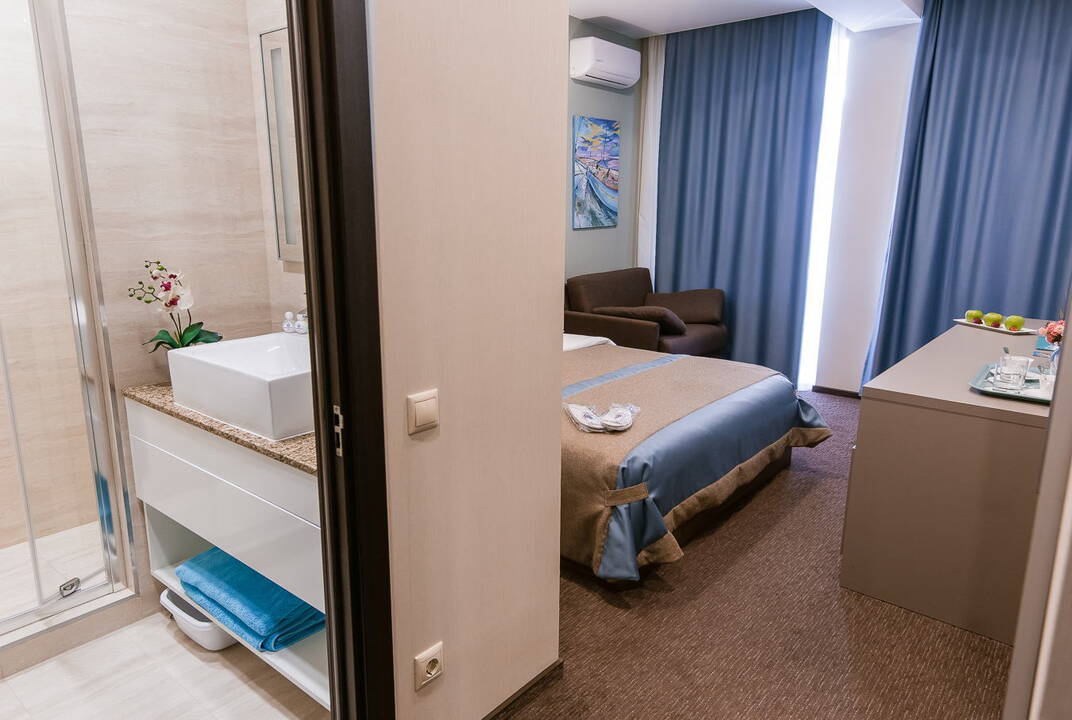 «Blumarin» расположен на закрытой охраняемой территории. 7-этажный корпус отеля вмещает 32 просторных номеров разной категории, в которых можно одновременно разместить более 90 человек. В здании работает лифт. Каждый номер гостиницы укомплектован необходимой мебелью, оборудован необходимой бытовой техникой: сейфом, кондиционером и мини-холодильником, ТВ и Wi-Fi. У любого номера есть терраса или балкон, с которых открываются чудесные виды на море и горы.