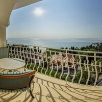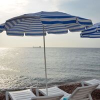 Галечный пляж находится на расстоянии 300 метров от жилого корпуса. К морю ведут ступени. На берегу отдыхающим предлагаются шезлонги и зонтики.