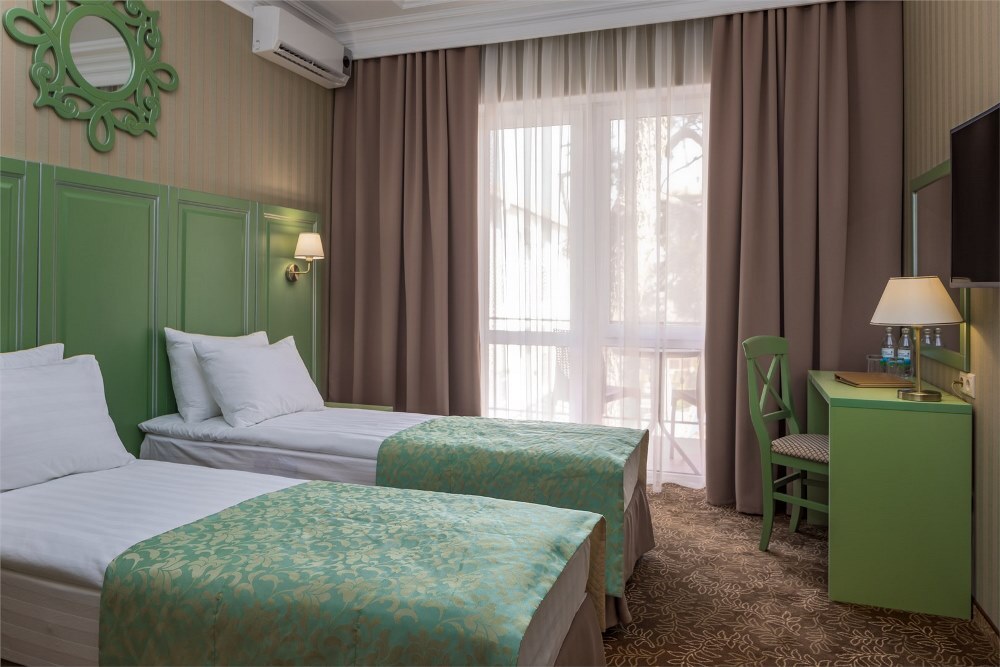 Отель «Marsel» привлекает внимание лаконичным европейским обликом. Он встречает гостей в центре города на спокойной тенистой улице, и при этом море, парки и курортные развлечения остаются в шаговой доступности. Уединенность и размеренная жизнь отеля придутся по душе семейным парам с детьми и индивидуальным путешественникам. Интерьер здания создан на контрасте с жарким климатом. Бежевые и серые оттенки привносят нотки умиротворения и располагают к отдыху. Дизайн отеля и апартаментов продуман до мелочей. Вся мебель выдержана в едином европейском стиле. Кровати с ортопедическими матрасами помогают расслабиться, а любители поспать допоздна оценят плотные шторы на окнах. После насыщенного дня в номер приятно подняться на бесшумном лифте. Независимо от того, планируете вы отдых вдвоем или же отправляетесь в семейное путешествие, в отеле «Marsel» найдутся номера различных категорий – как уютные стандартные номера, так и просторные апартаменты категории «Джуниор Сюит». Их можно забронировать заранее, и по желанию добавить дополнительные спальные места для маленьких детей. К вашему приезду здесь позаботятся обо всех мелочах повседневной жизни. Халаты, тапочки, средства личной гигиены, чайный набор, питьевая вода, сейф, телефон, кондиционер, маленький холодильник - все это будет ждать на месте. Тем, кто любит путешествовать налегке, остается положить в чемодан любимые пляжные аксессуары и купить билет на самолет или поезд. Чтобы в отпуске наслаждаться прекрасными утренними часами, в отеле «Marsel» завтраки по системе “шведский стол“ включены в стоимость номеров. На территории есть детская мини-площадка и пара уютных беседок. Хватает одного взгляда на его элегантный облик, чтобы захотелось окунуться в комфорт и уют отеля.
