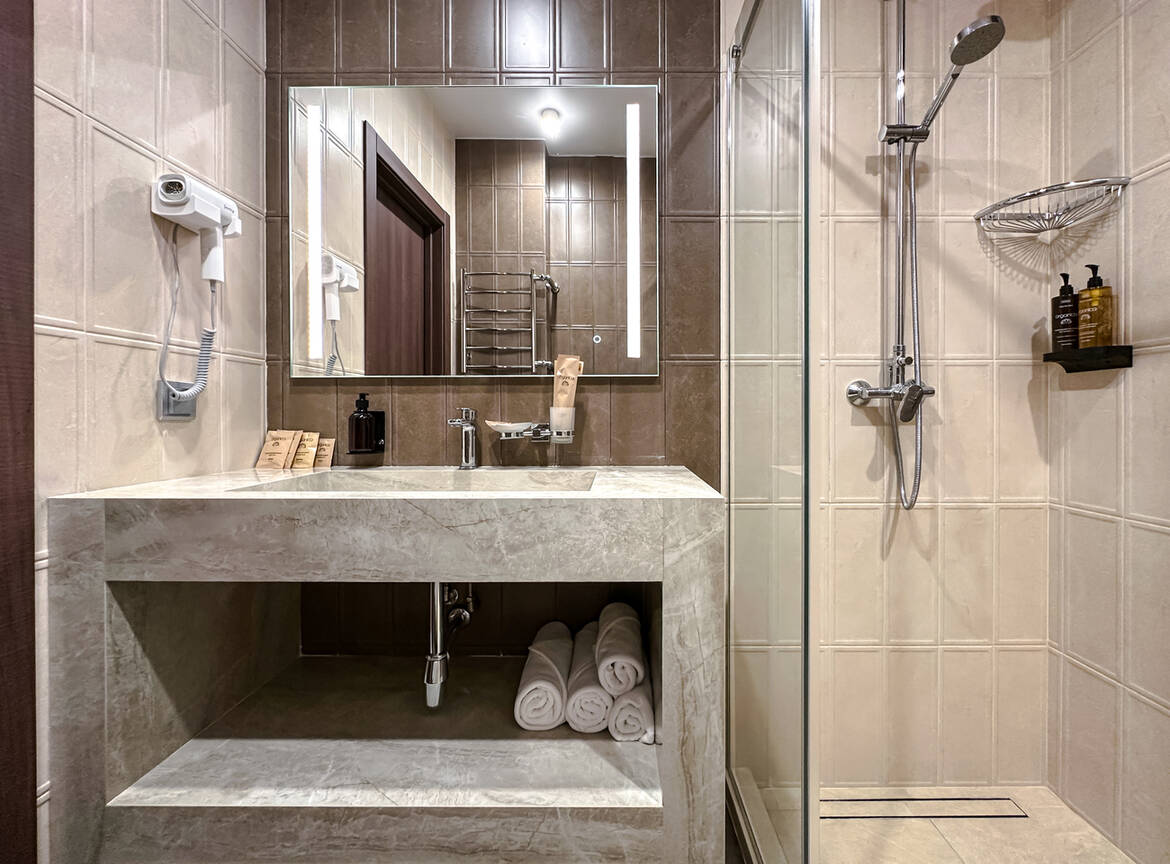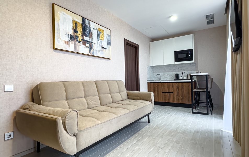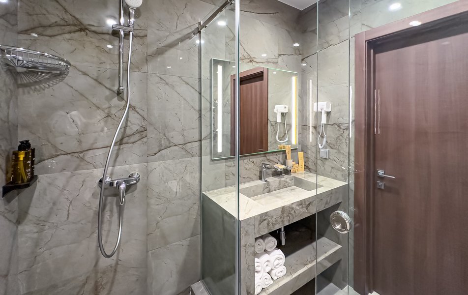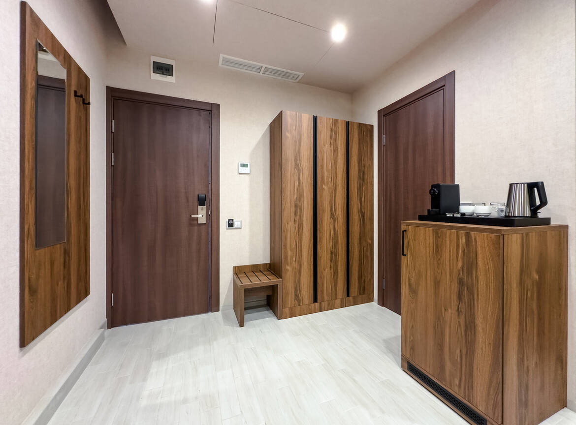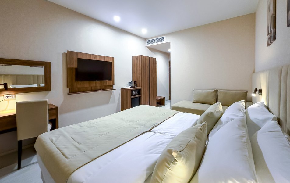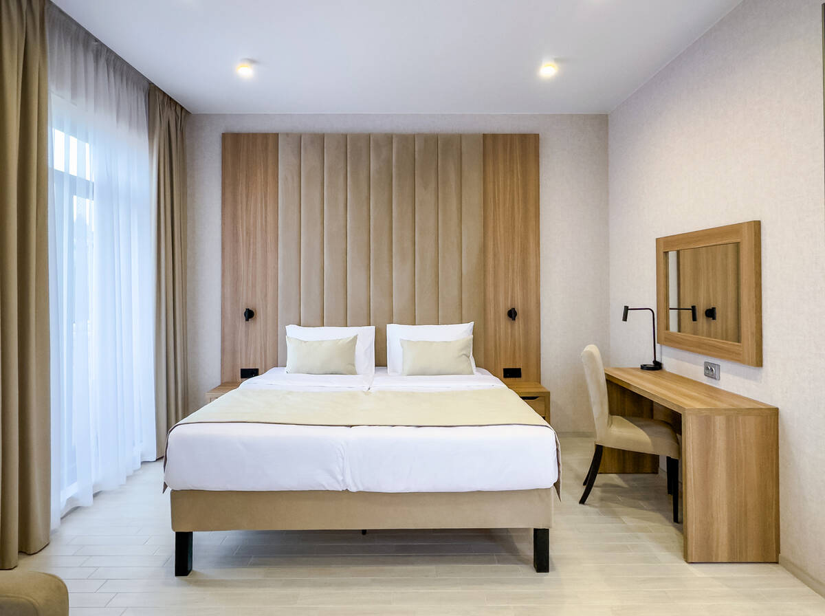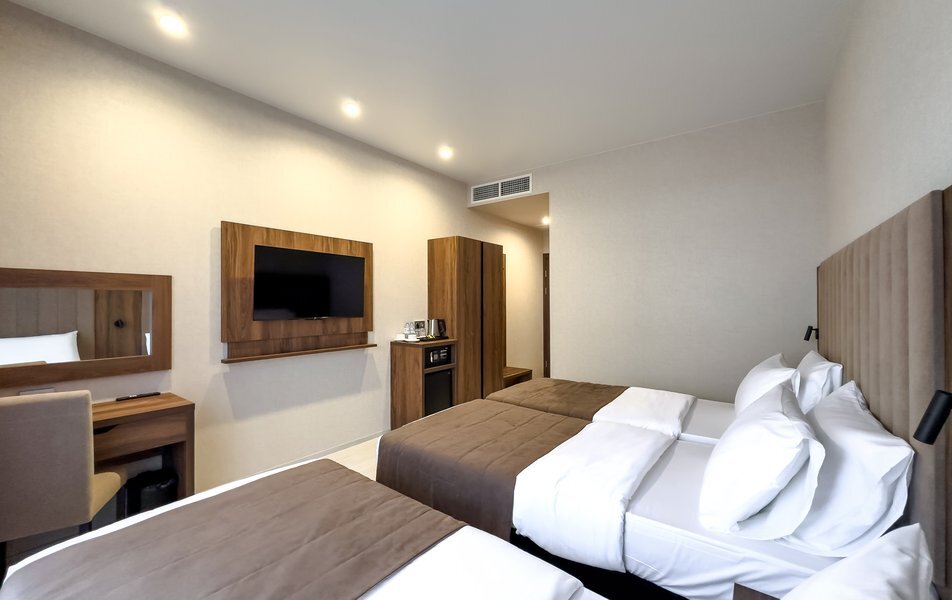 Для размещения гостей предусмотрены номера разных категорий, включая стандартные, улучшенные, люксы и апартаменты. Интерьеры оформлены в теплой гамме с использованием натуральных материалов и мягкого освещения. В каждом номере установлены кровати, шкафы для одежды, телевизоры, кондиционеры, мини-холодильники, электрочайники и душевые комнаты.