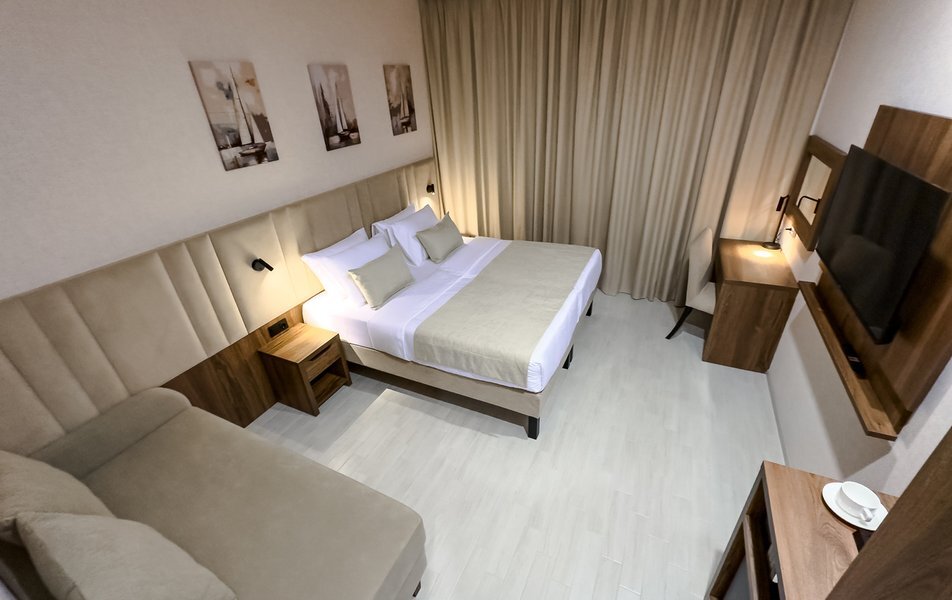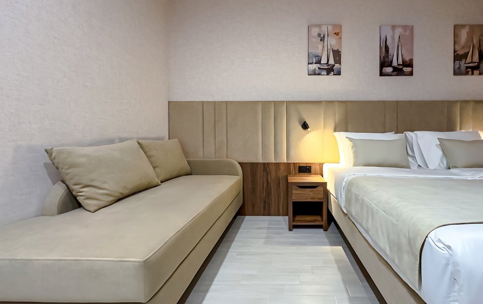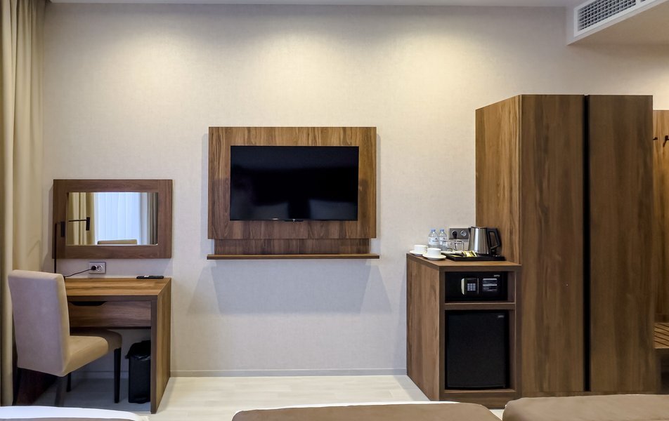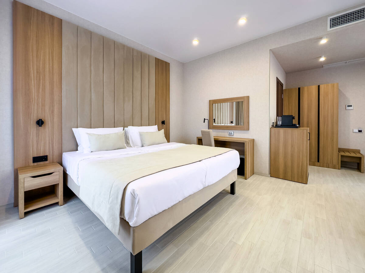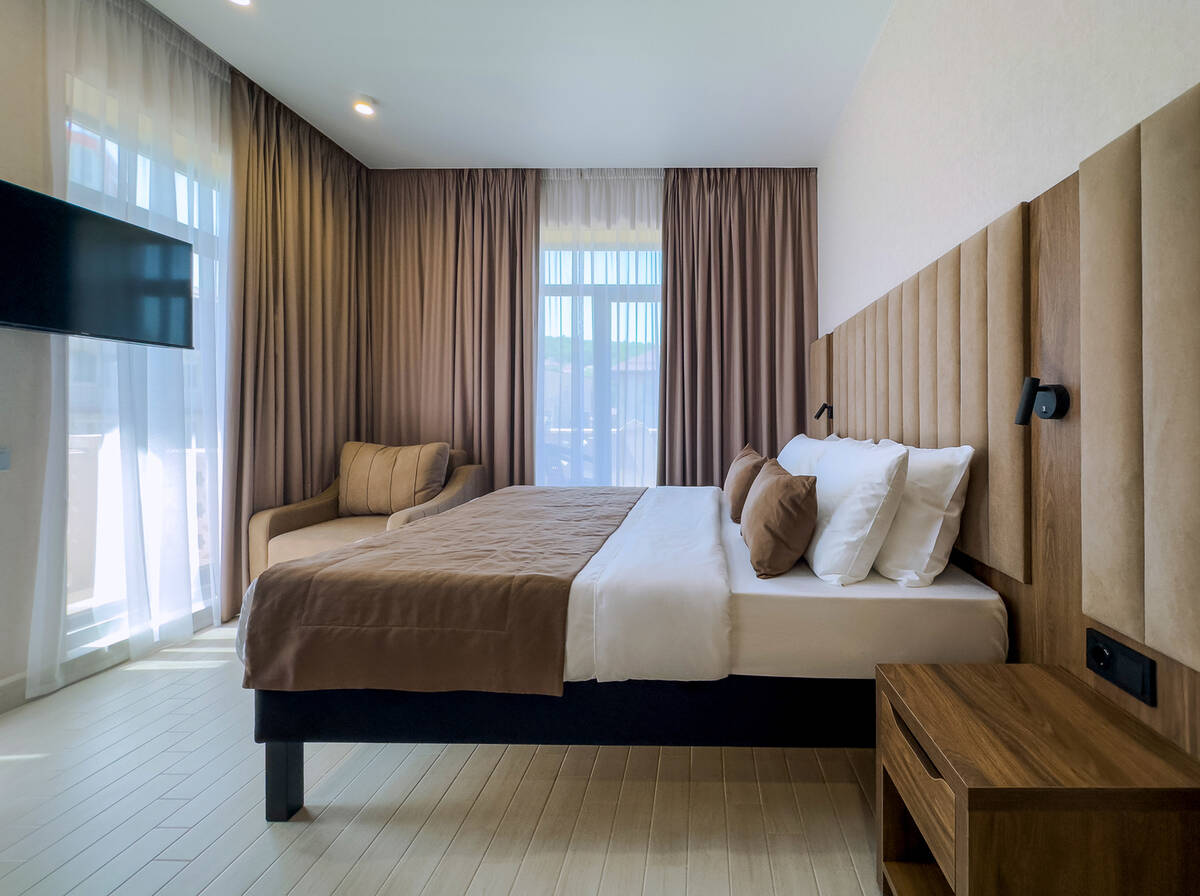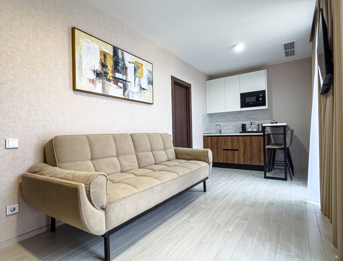 Для размещения гостей предусмотрены номера разных категорий, включая стандартные, улучшенные, люксы и апартаменты. Интерьеры оформлены в теплой гамме с использованием натуральных материалов и мягкого освещения. В каждом номере установлены кровати, шкафы для одежды, телевизоры, кондиционеры, мини-холодильники, электрочайники и душевые комнаты.